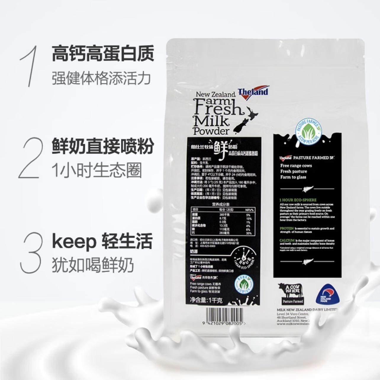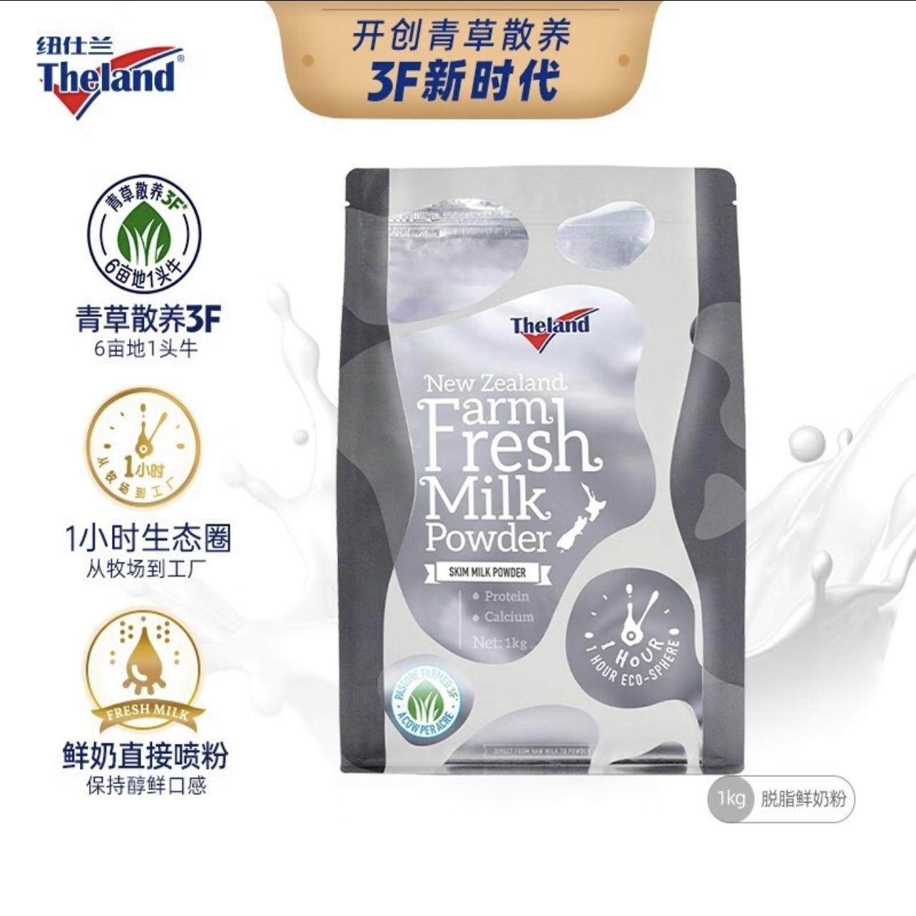 新纽仕兰脱脂鲜奶粉1公斤大袋新西兰原装进口奶粉减少脂肪摄入量