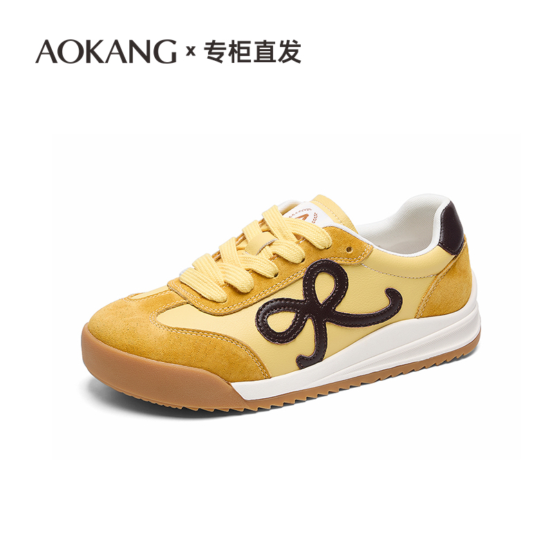 奥康女鞋2025秋新款流行德训鞋真皮休闲运动鞋商场同款撞色阿甘鞋
