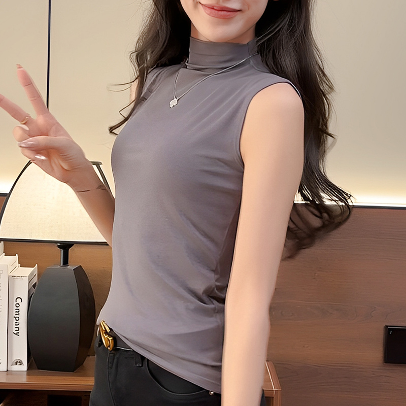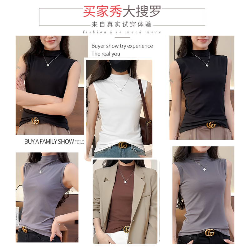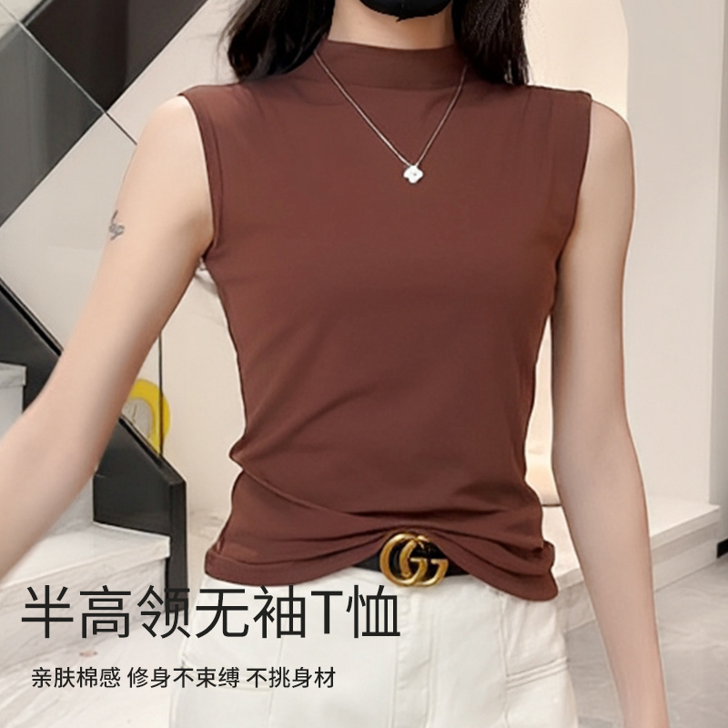 半高领无袖背心女2025春夏新款内搭t恤上衣坎肩小中领百搭打底衫