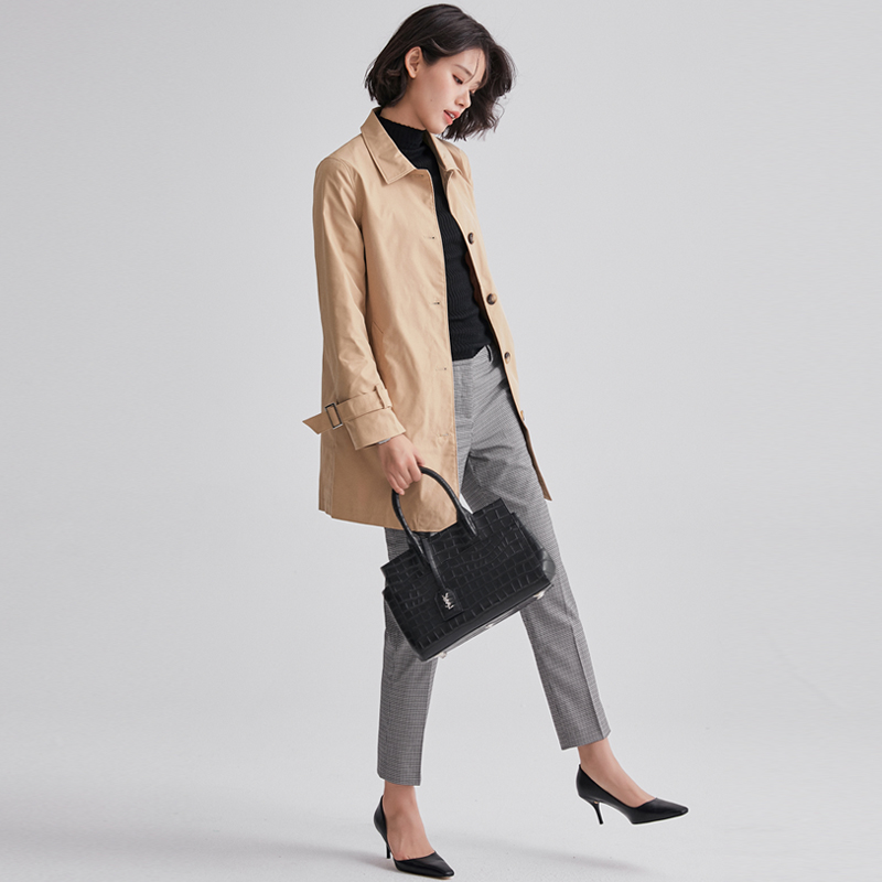 宿色风衣女中长款春秋新款气质小个子简约直筒短款韩版外套