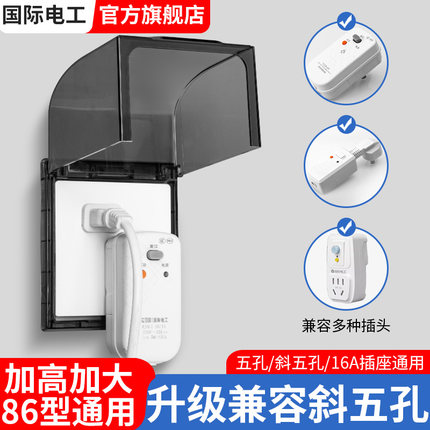 智能马桶斜五孔插座防水盒86错位加高防溅盒浴室卫生间自粘防水罩