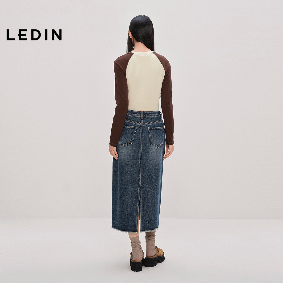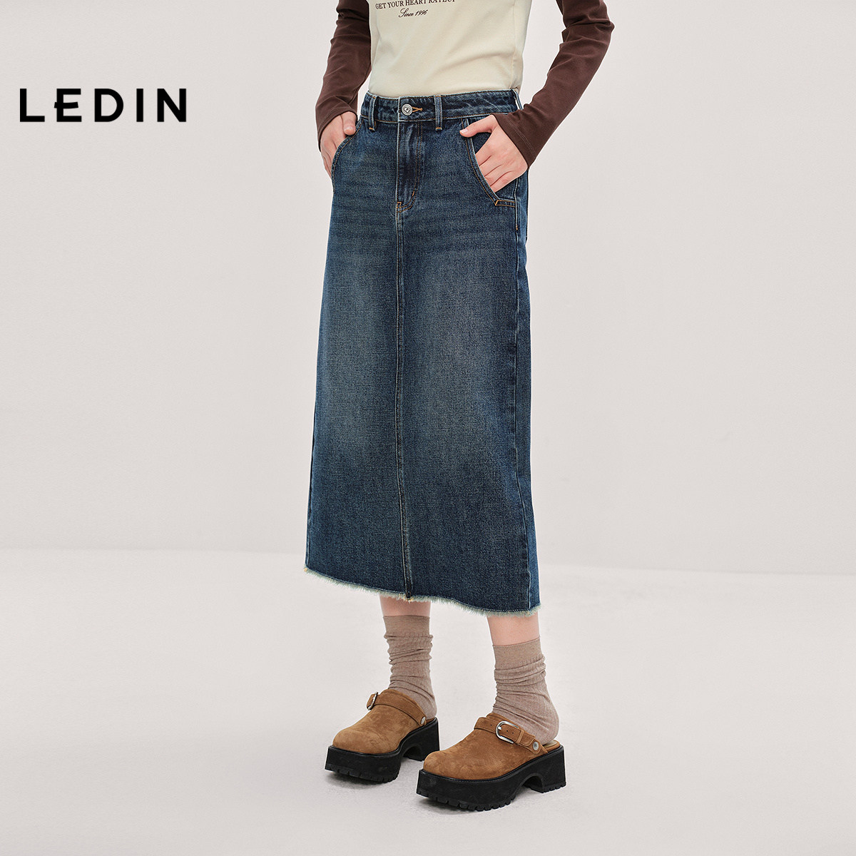 【商场同款】乐町水洗牛仔长裙秋季新款遮肉A字半身裙C2HFF3509