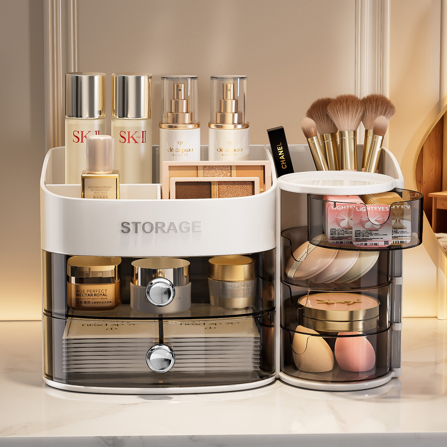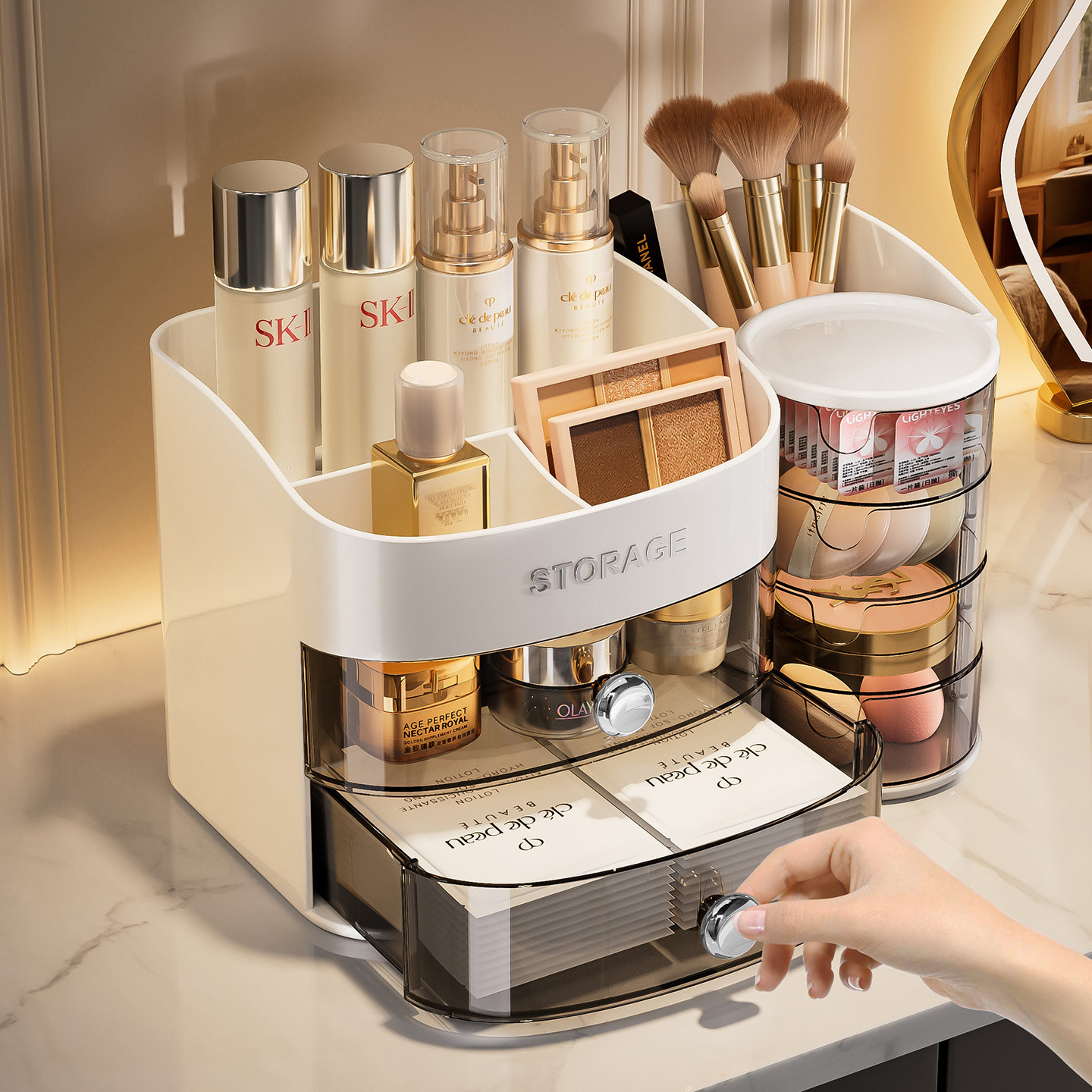 化妆品收纳盒高级感梳妆台口红化妆刷子桶防尘大容量护肤品置物架