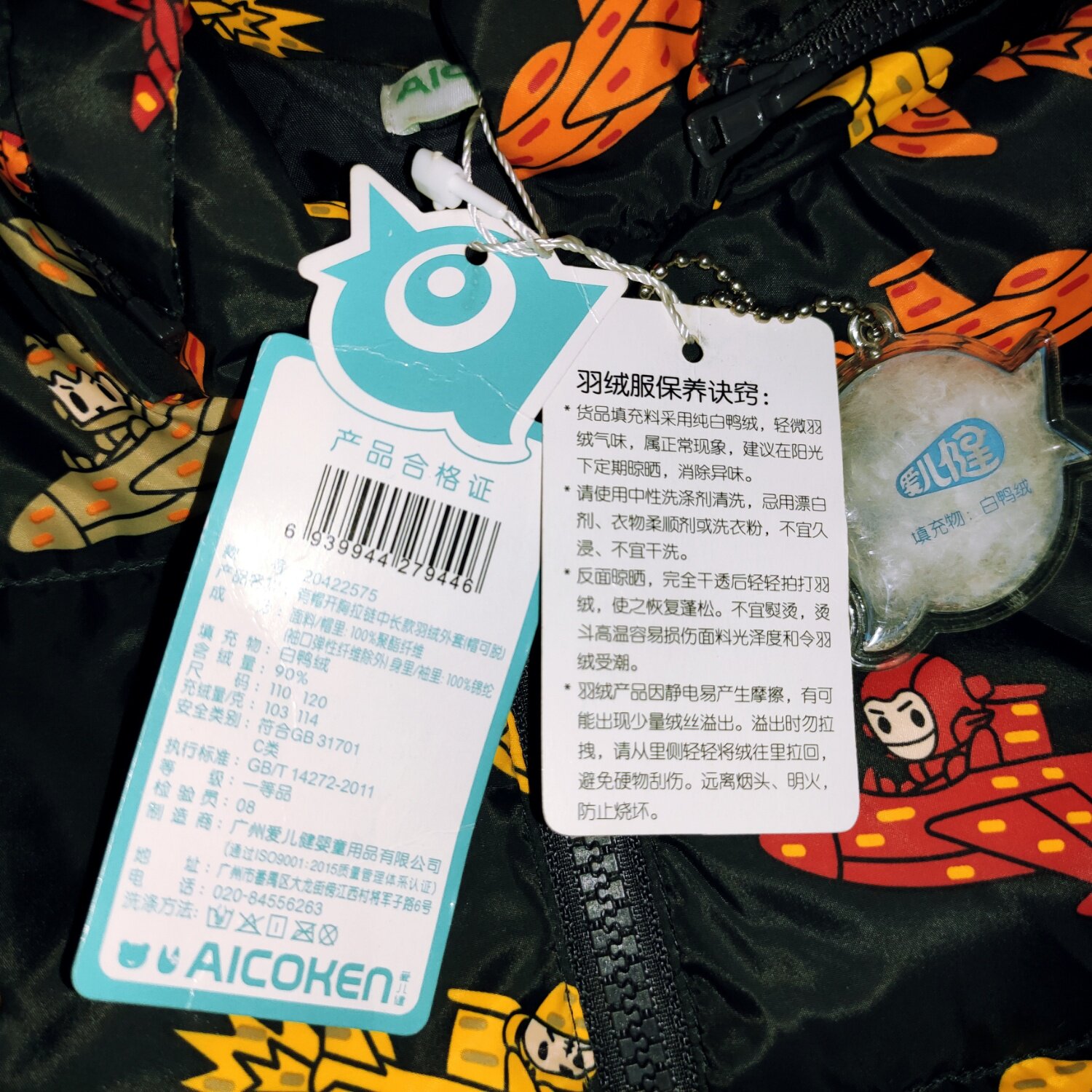 3.9折1爱儿健品牌童装20422575男童冬有帽开胸拉链中款羽绒服外套