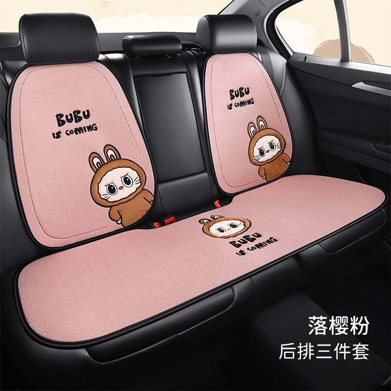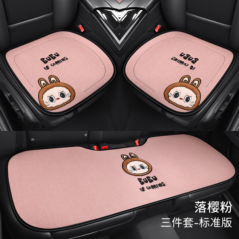 汽车坐垫四季通用可爱夏冬季亚麻透气高级感车内半包座椅套车垫