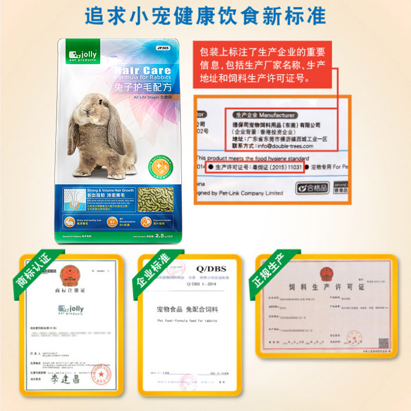 祖莉护毛配方兔粮2.5kg防球虫 全龄段兔子主粮高纤健肠营养BV除臭