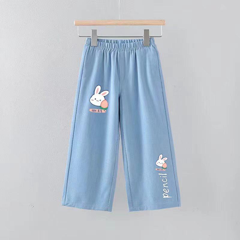 女童天丝牛仔裤薄款夏季长裤2024新款儿童阔腿裤中大童九分裤子夏