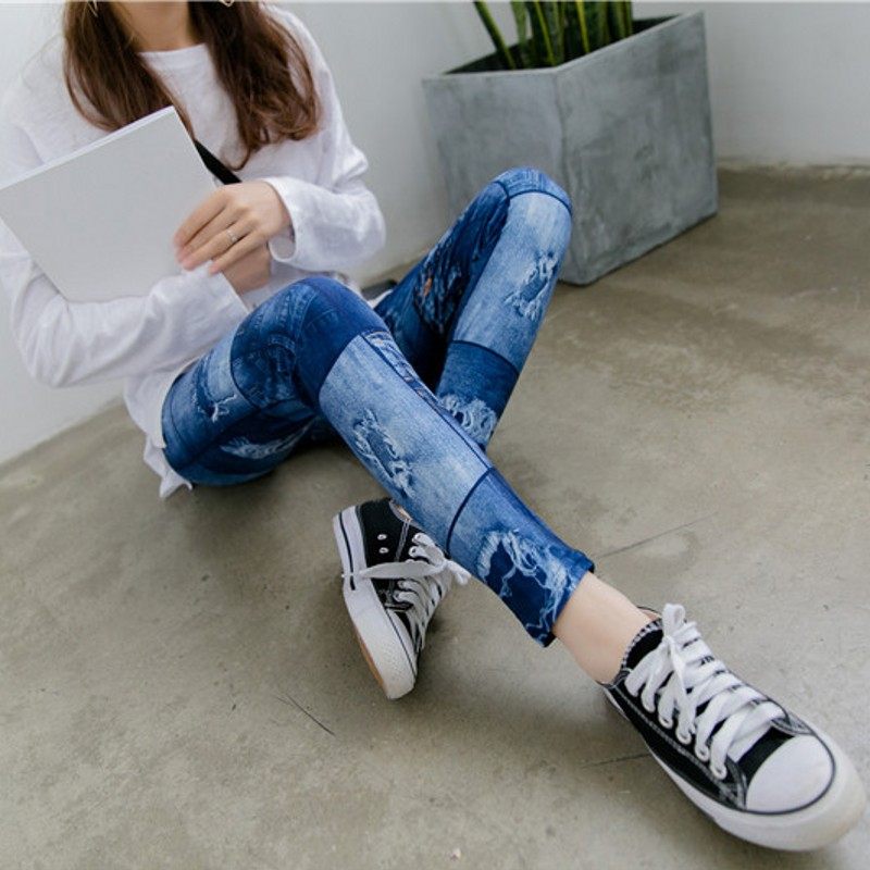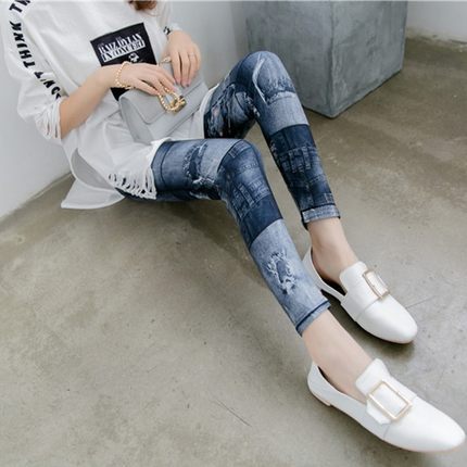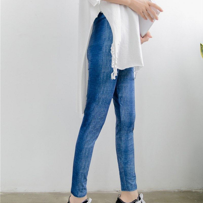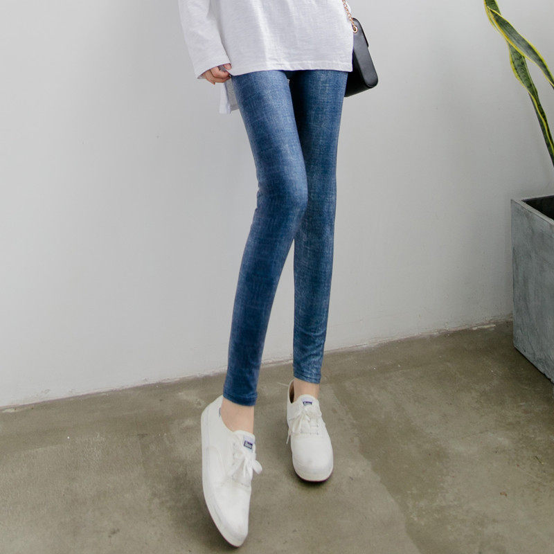 大码外穿仿牛仔打底裤弹力显瘦紧身裤高腰春夏薄款小脚裤长裤女潮