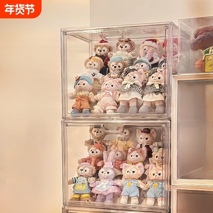 迪士尼挂件收纳盒展示架公仔桌面娃柜玲娜贝儿星黛露防尘长方形