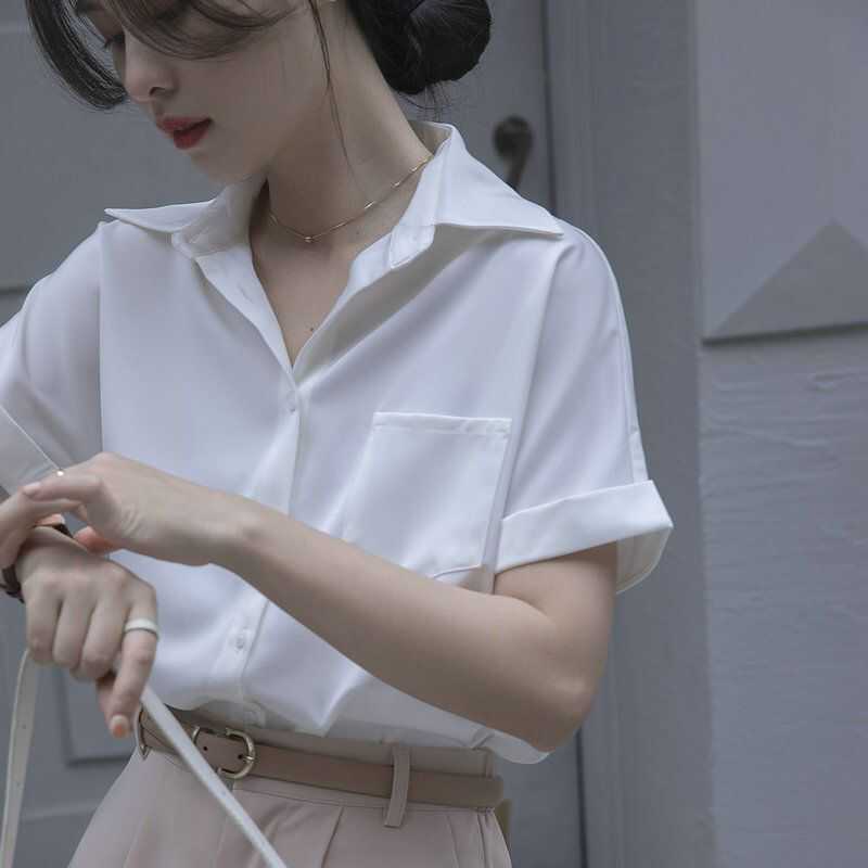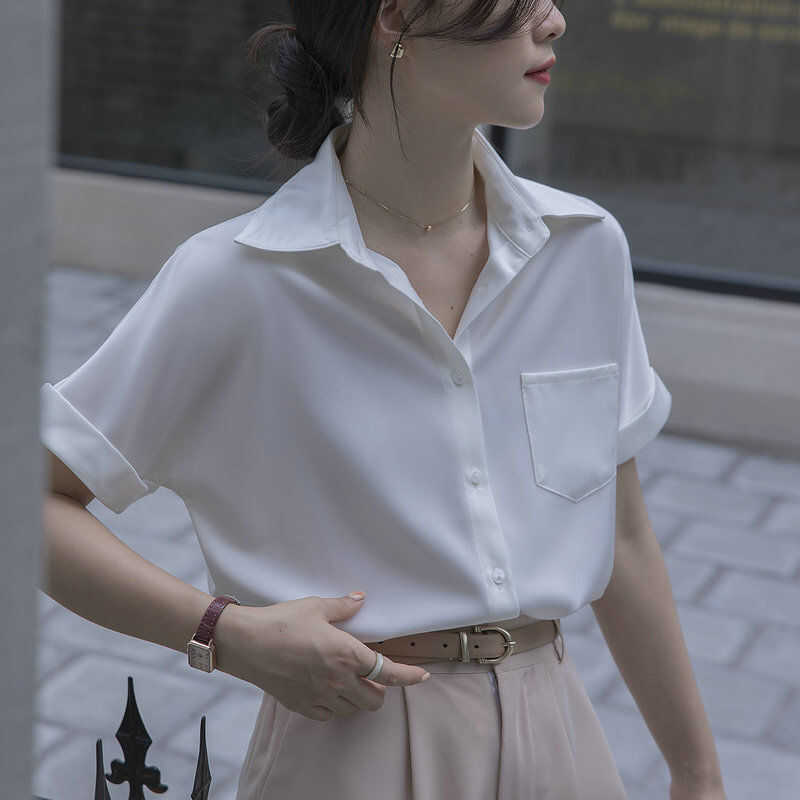 垂感气质白色衬衫女轻熟风职业短袖小众通勤正装显瘦法式百搭上衣