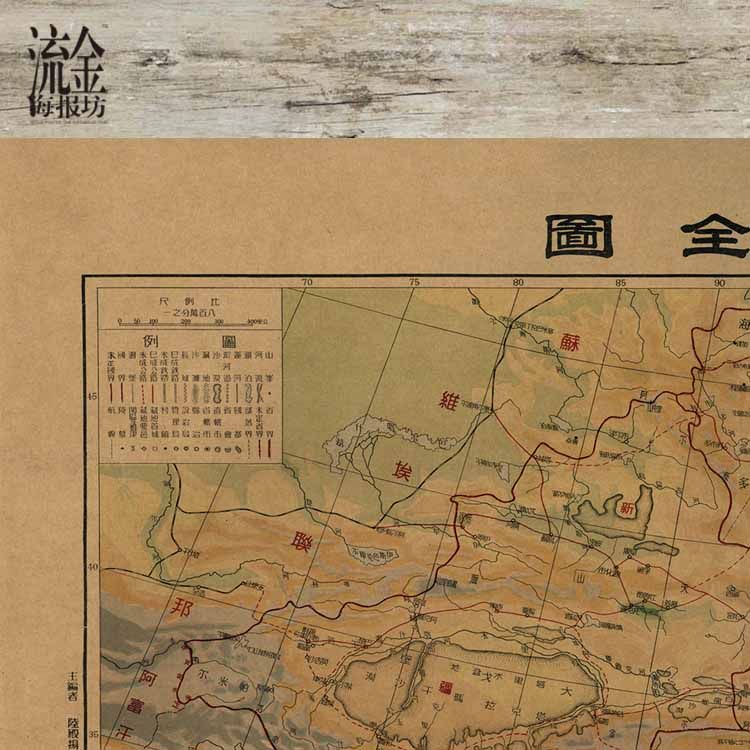 中华民国地图牛皮纸墙贴 教学挂图 装饰画 挂画 壁画 画芯