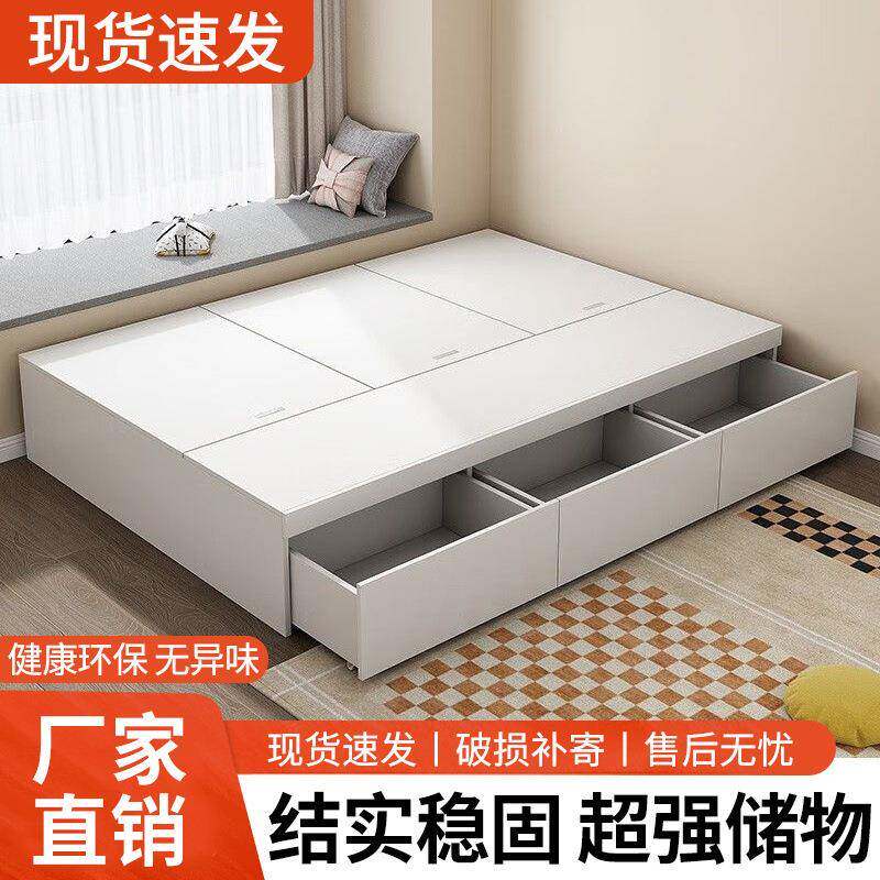 实木床简约储物双人床高箱无床头收纳小户型榻榻米单人床外贸