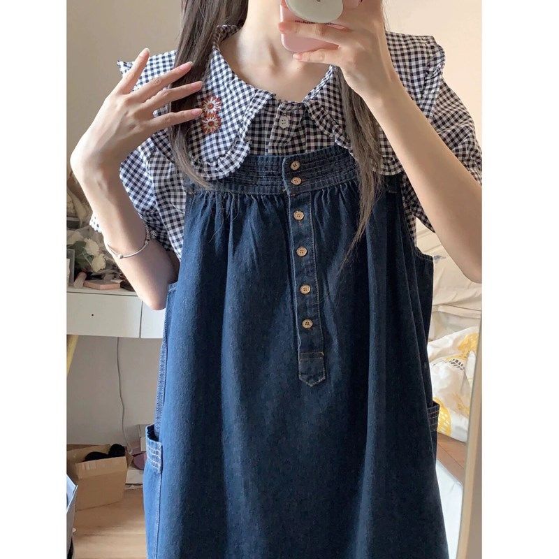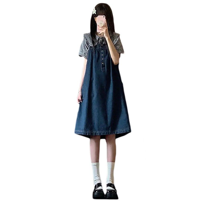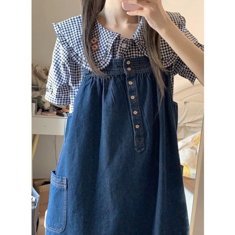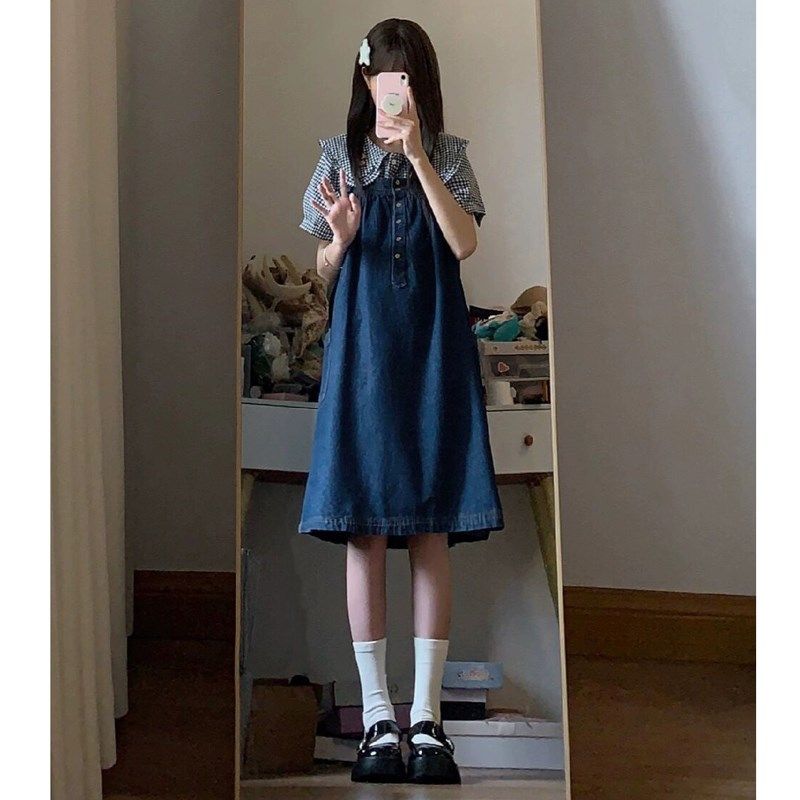 女大童牛仔背带裙子套o装夏季1215岁少女初中学生日系甜美连衣裙