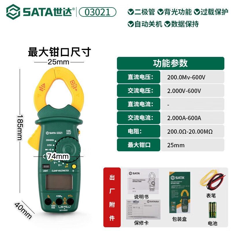世达(SATA)数字钳形万用表03021