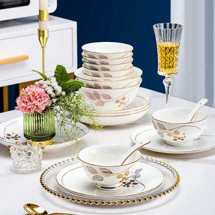 碗筷碗盘组合碗碟陶瓷器轻乔迁厂家直销景德镇奢套装家用骨瓷餐具