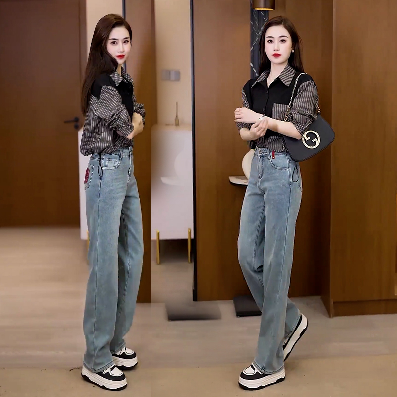 高腰浅色直筒牛仔裤女2025年新款春秋窄版阔腿裤早秋宽松爆款裤子