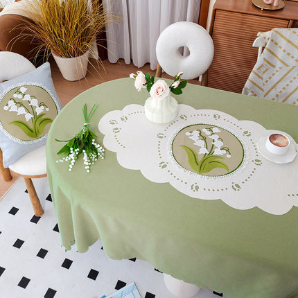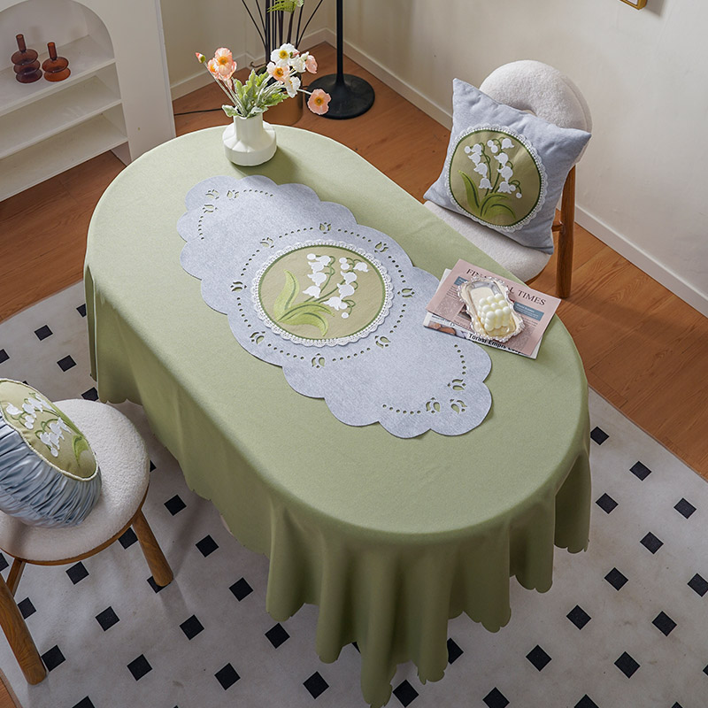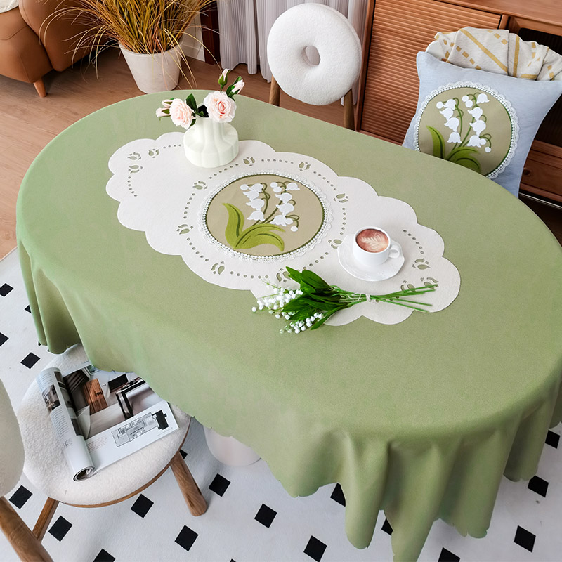 法式氛围感桌布布艺茶几布客厅装饰长方形台布轻奢刺绣椭圆餐桌垫