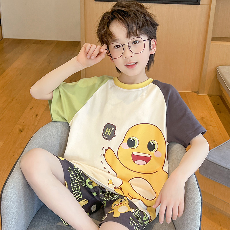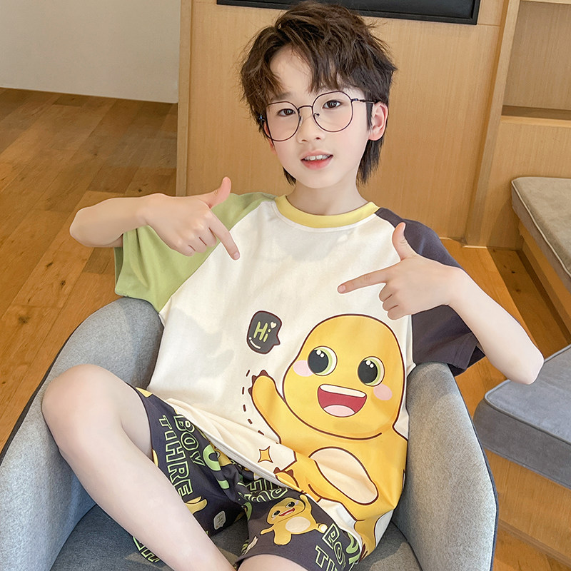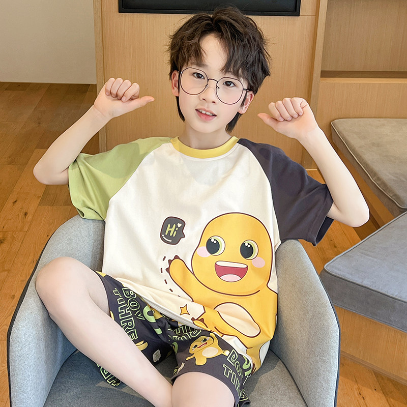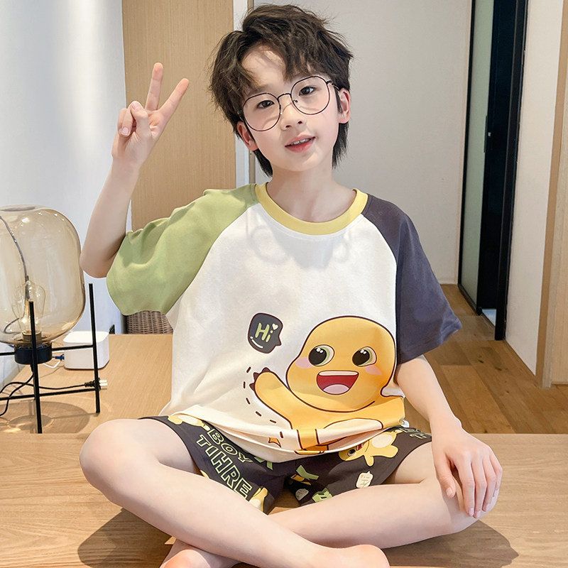 儿童睡衣男童夏季短袖薄款纯棉初中生中大童卡通小男孩家居服套装
