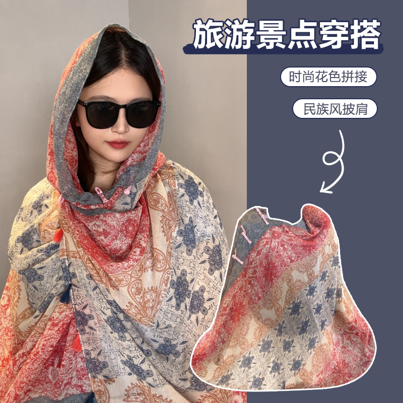 韩系时尚气质防晒披肩女款2025新款沙滩海边度假丝巾简约百搭头巾
