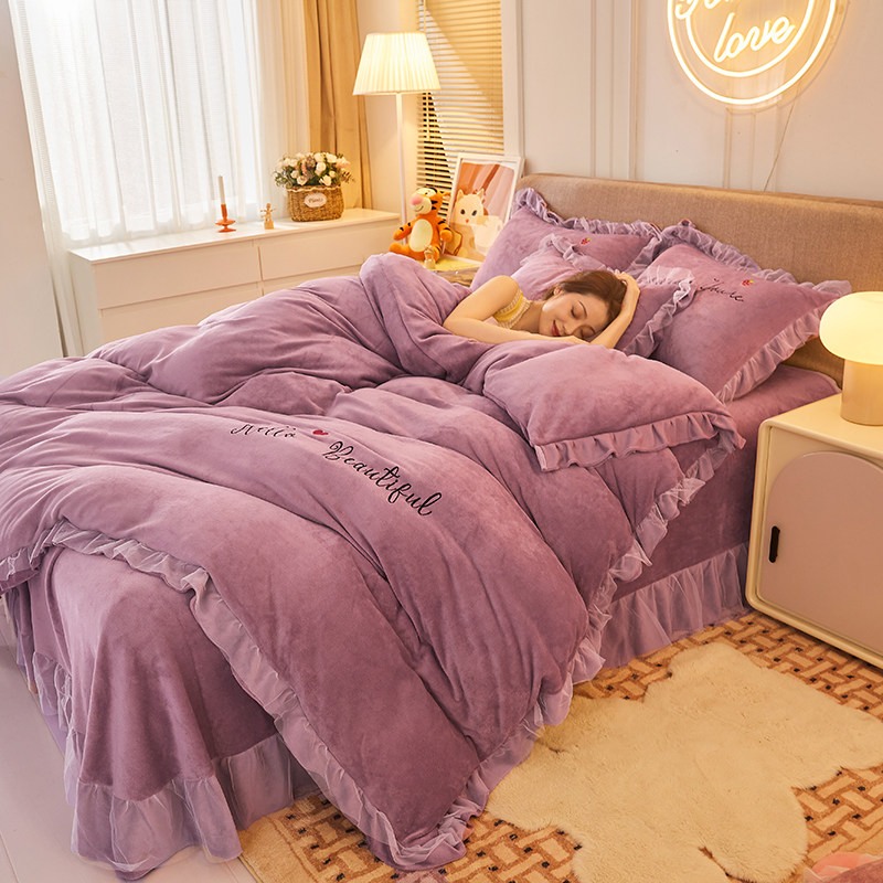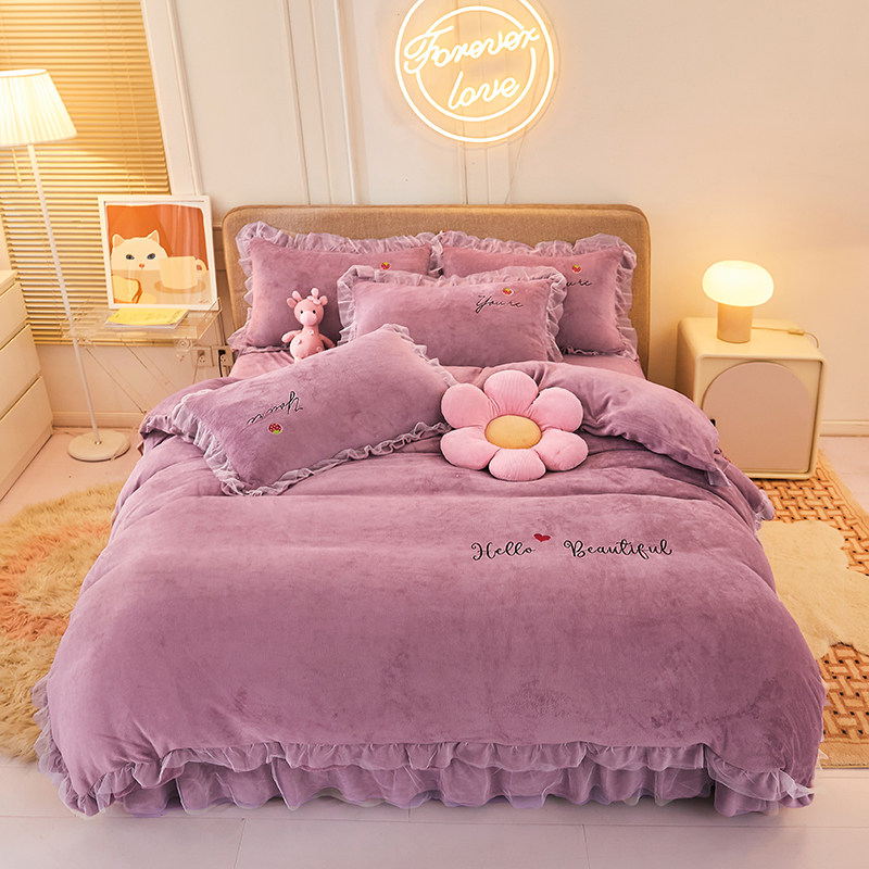 公主风牛奶绒四件套冬款珊