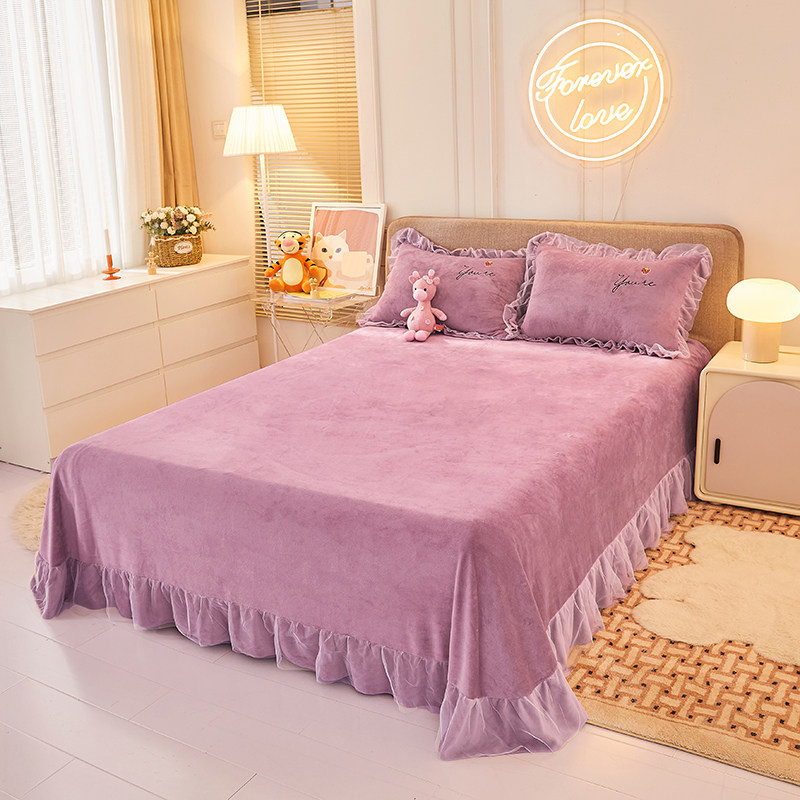 公主风牛奶绒四件套冬款珊瑚绒加厚双面加绒毛绒面床单被套床裙款