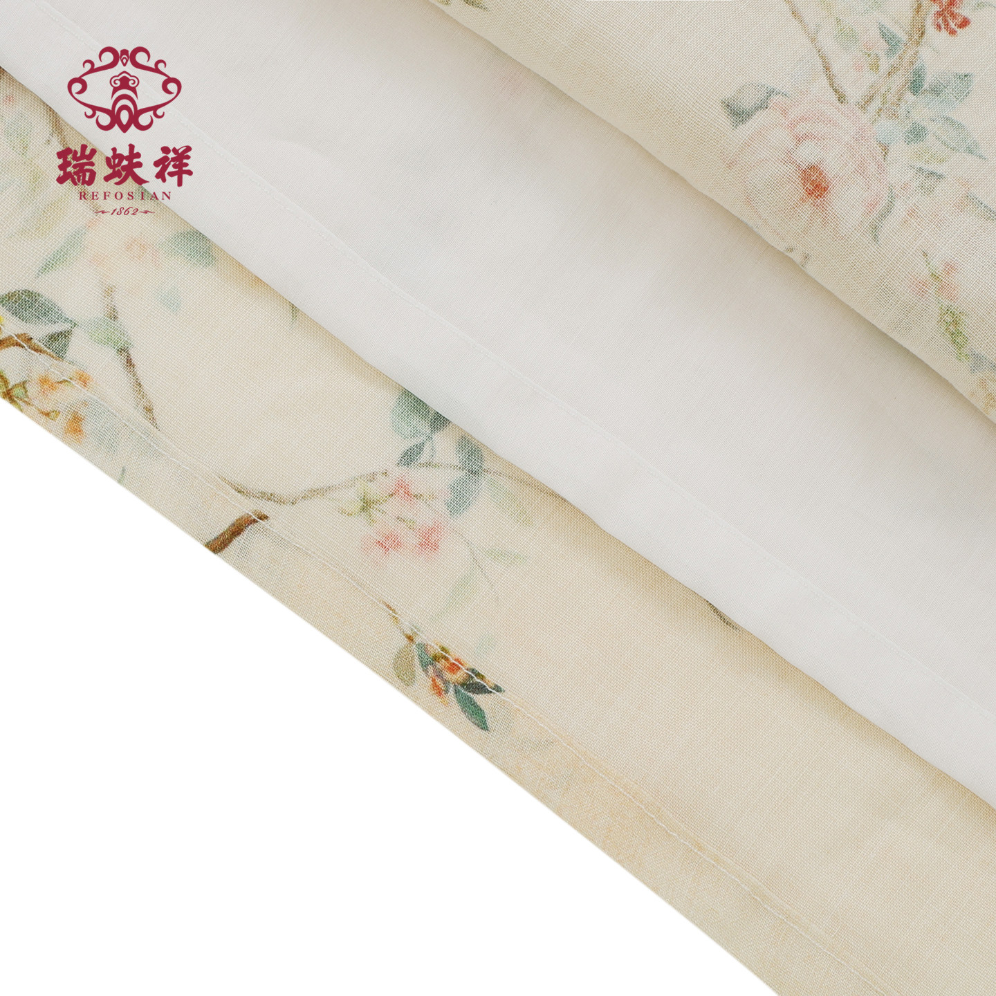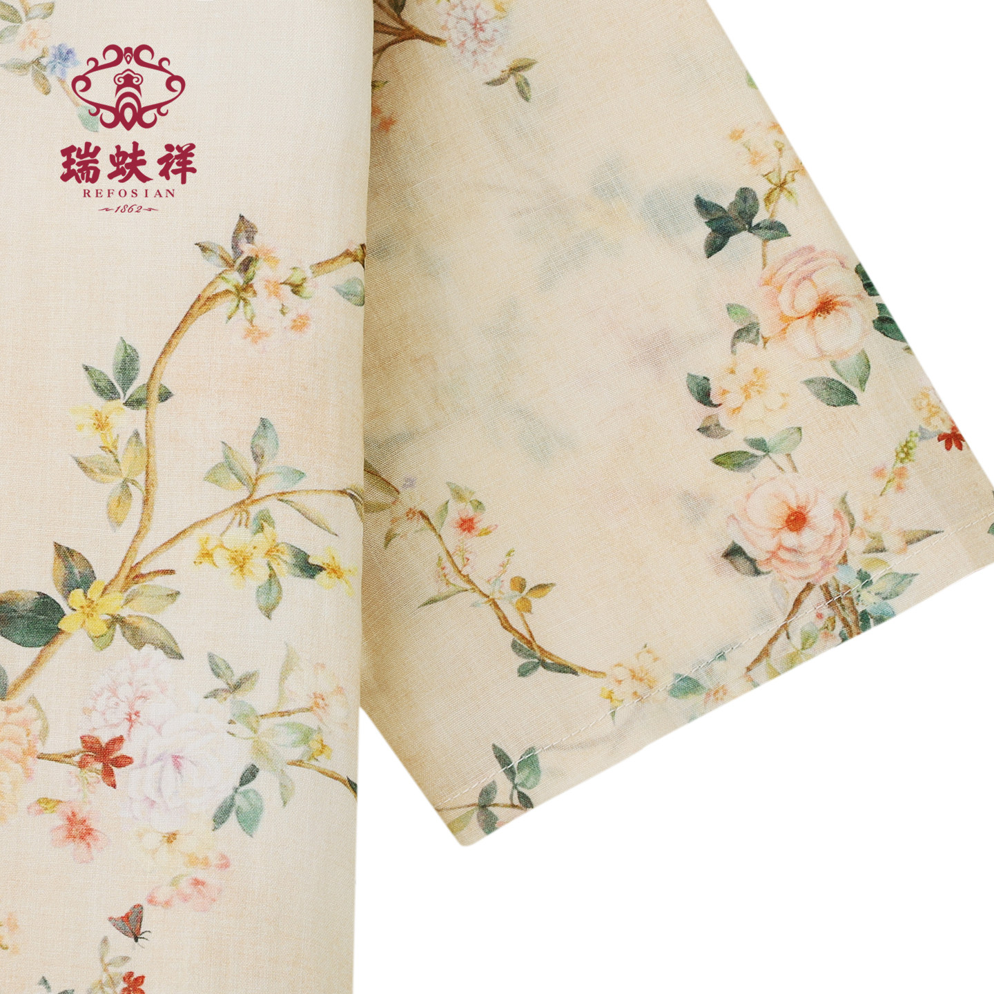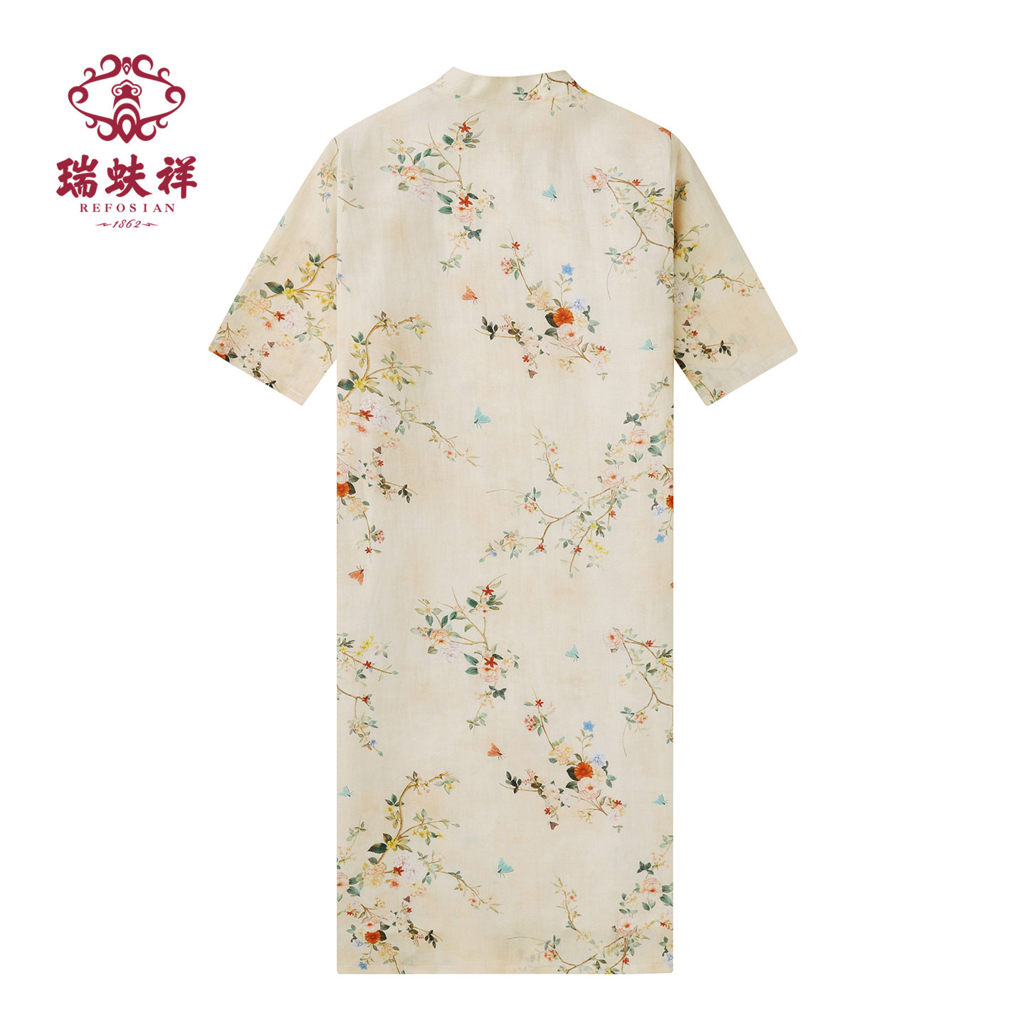 瑞蚨祥新中式苎麻旗袍连衣裙女款夏短袖印花优雅高端气质礼服新款