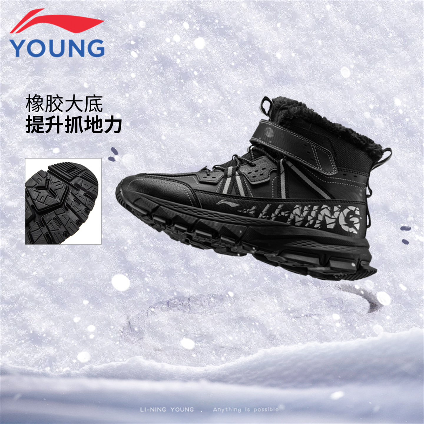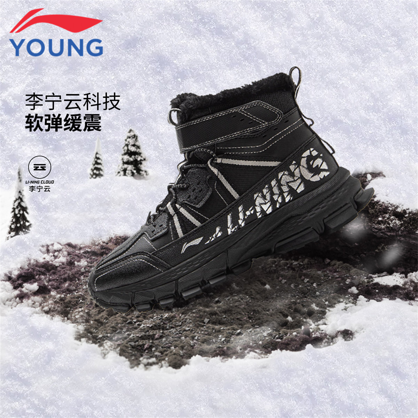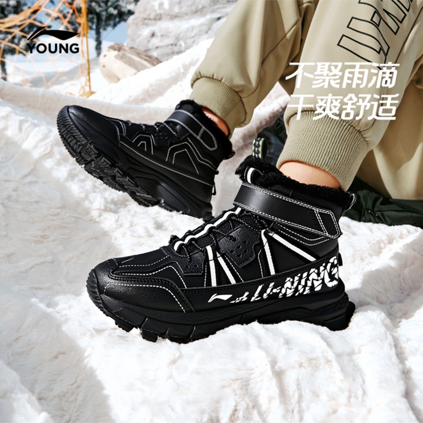 李宁童鞋儿童休闲棉鞋高帮雪地靴