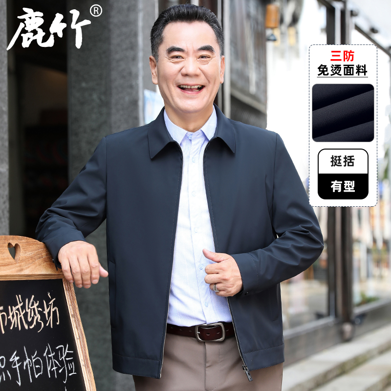 爸爸秋装外套中年男士商务休闲行政夹克中老年人春秋款老干部上衣
