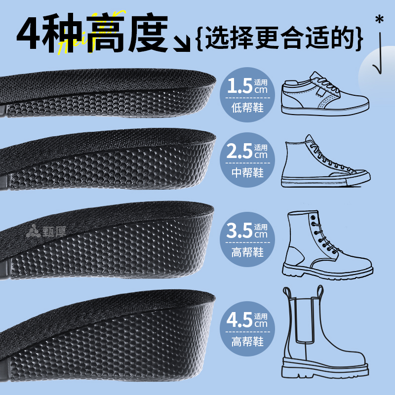 适用于添柏岚内增高鞋垫女隐形增高垫足弓支撑不累脚小个子半垫男