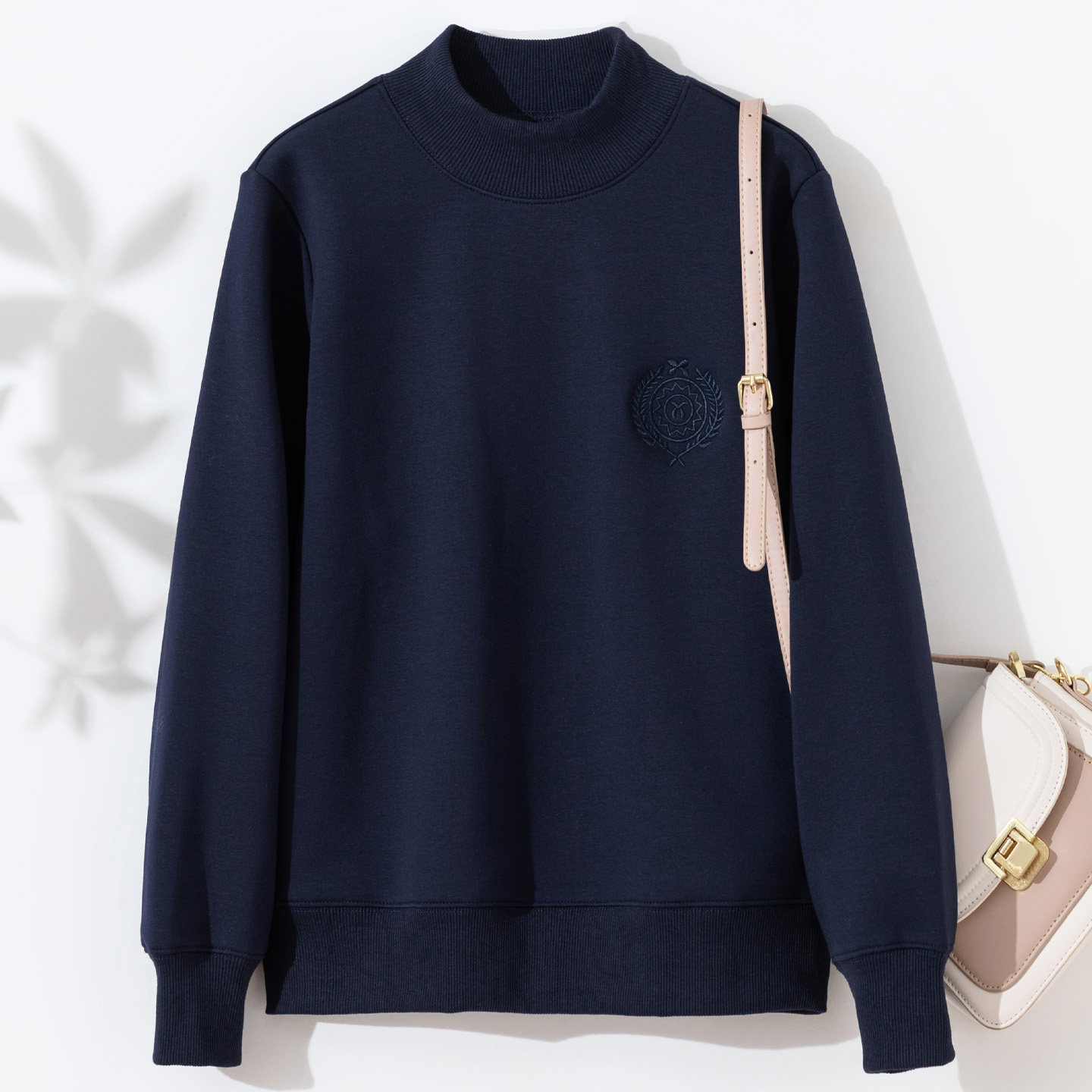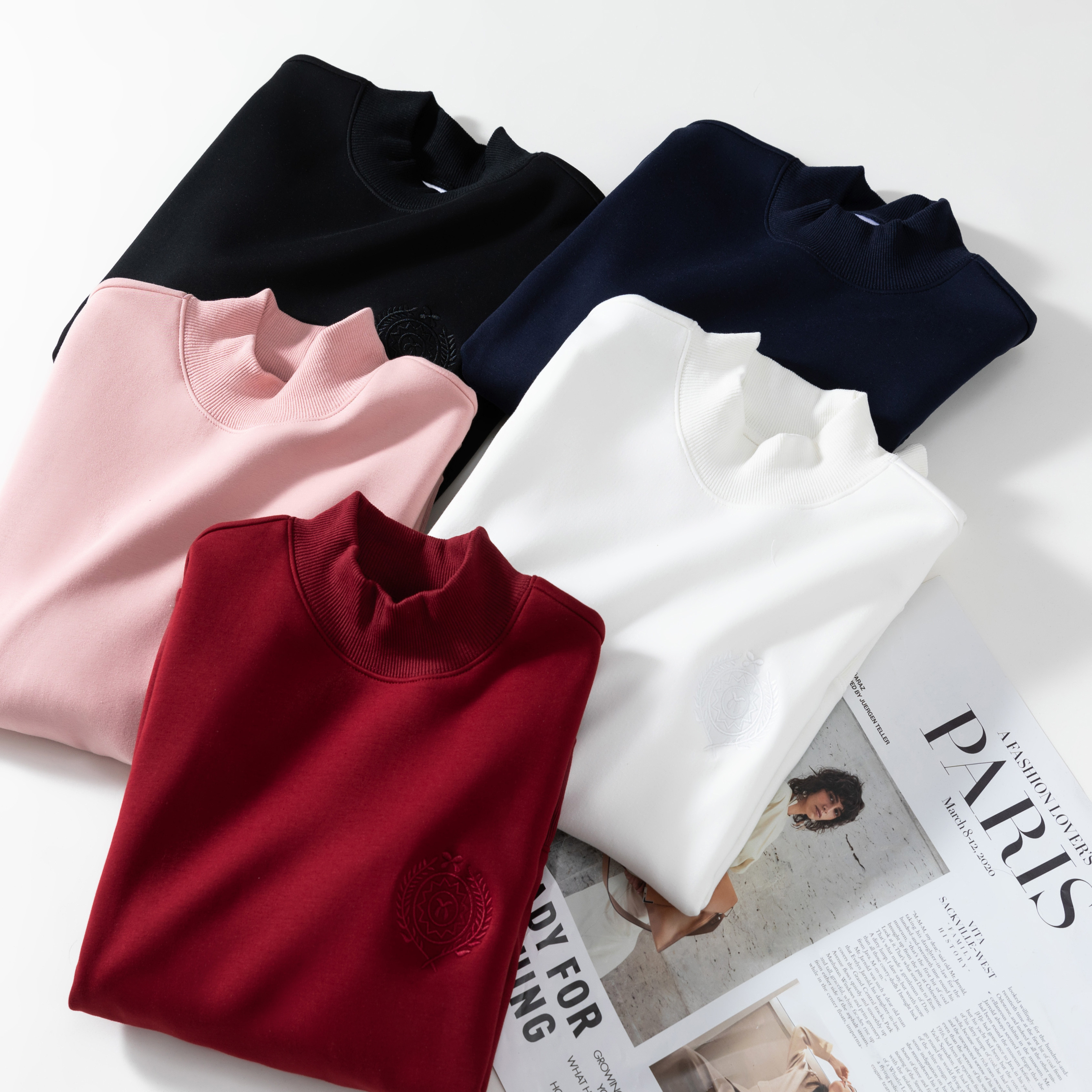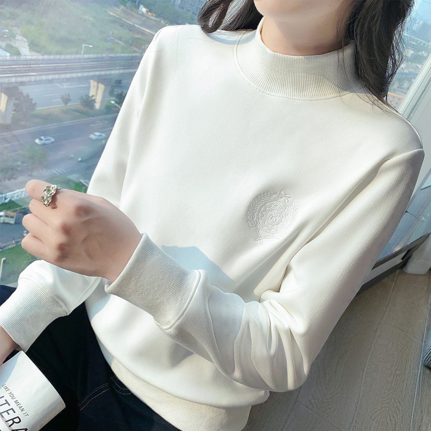 半高领正肩加绒套头卫衣女