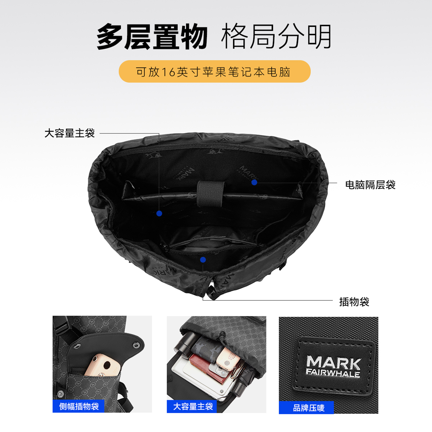 马克华菲男士双肩包大容量通勤背包男商务电脑包16寸大学生书包女
