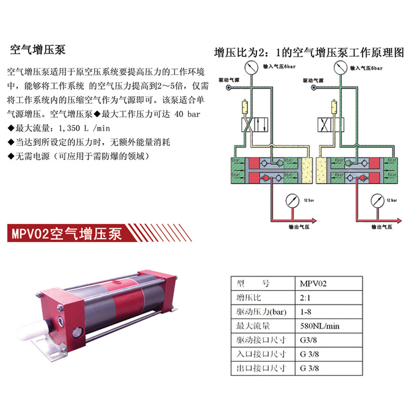 气动气体MPV02空气增压泵 空气增压设备超高压力试压泵自动保压