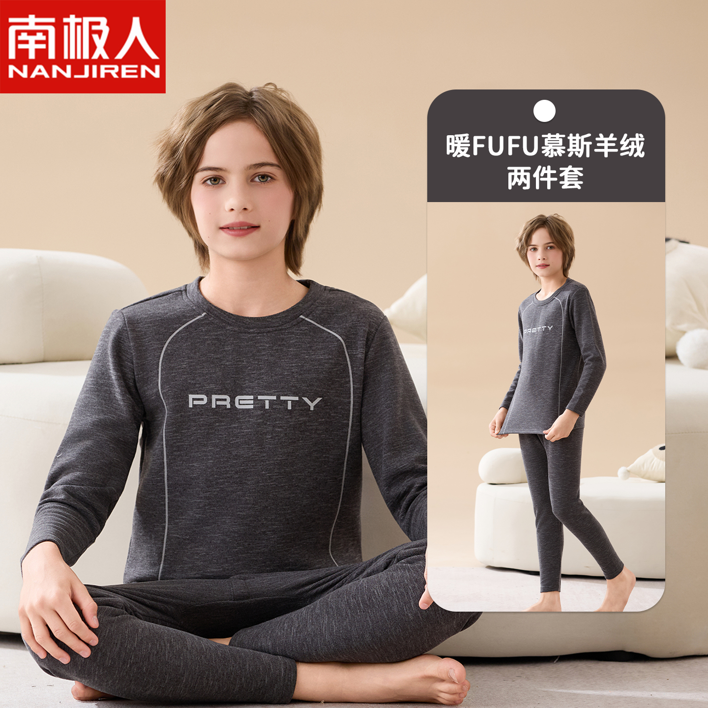 男童保暖内衣套装儿童中大童青少年秋衣秋裤加绒德加厚女孩打底冬