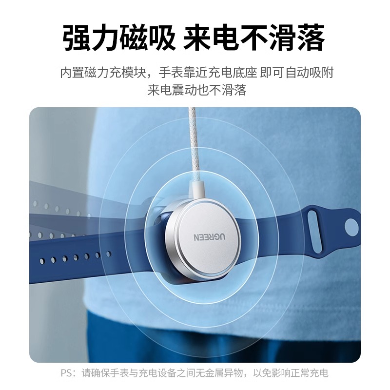 绿联手表充电器适用于苹果AppleiWatch8/7ultra无线快充头s6磁吸式5底座数据线SE表带series便携保护智能通用