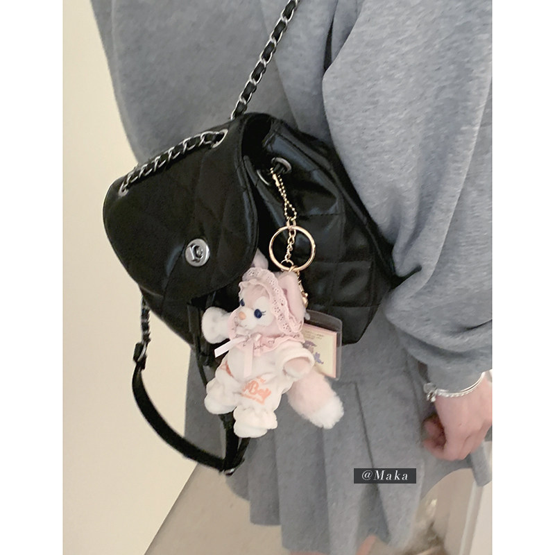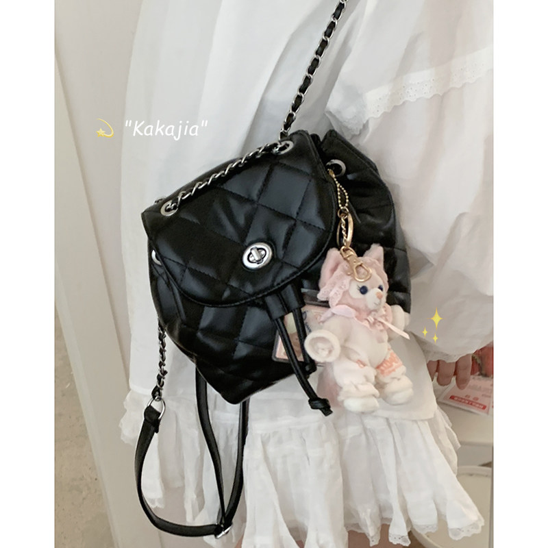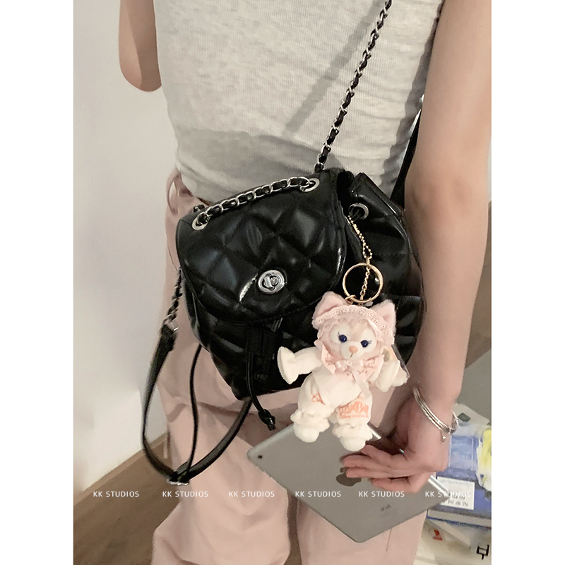 小香风菱格双肩包包女士2024新款潮时尚链条背包百搭单肩水桶包