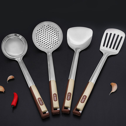 惬艺家用厨具加厚304不锈钢长柄炒菜铲子 厨房烹饪锅铲大汤勺漏勺
