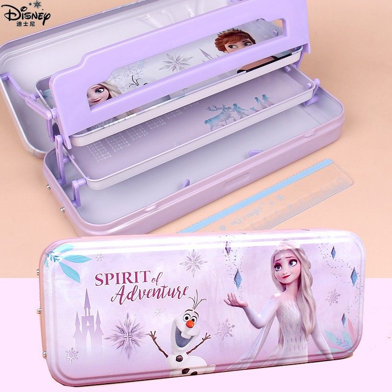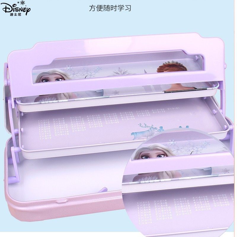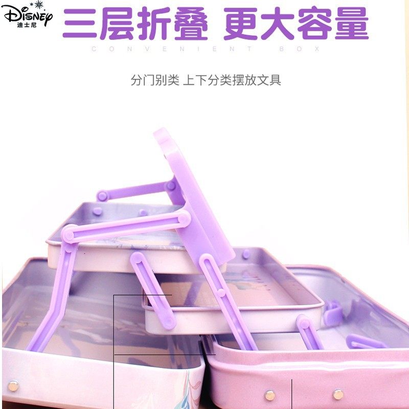 Disney迪士尼铁笔盒文具盒三层马口铁带看书架冰雪奇缘爱莎小学生铅笔盒