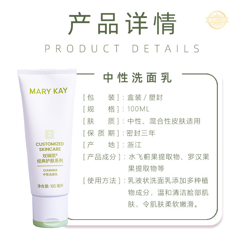 玫琳凯2号中性洗面奶100g官方正品深层清洁保湿清爽温和无泡沫