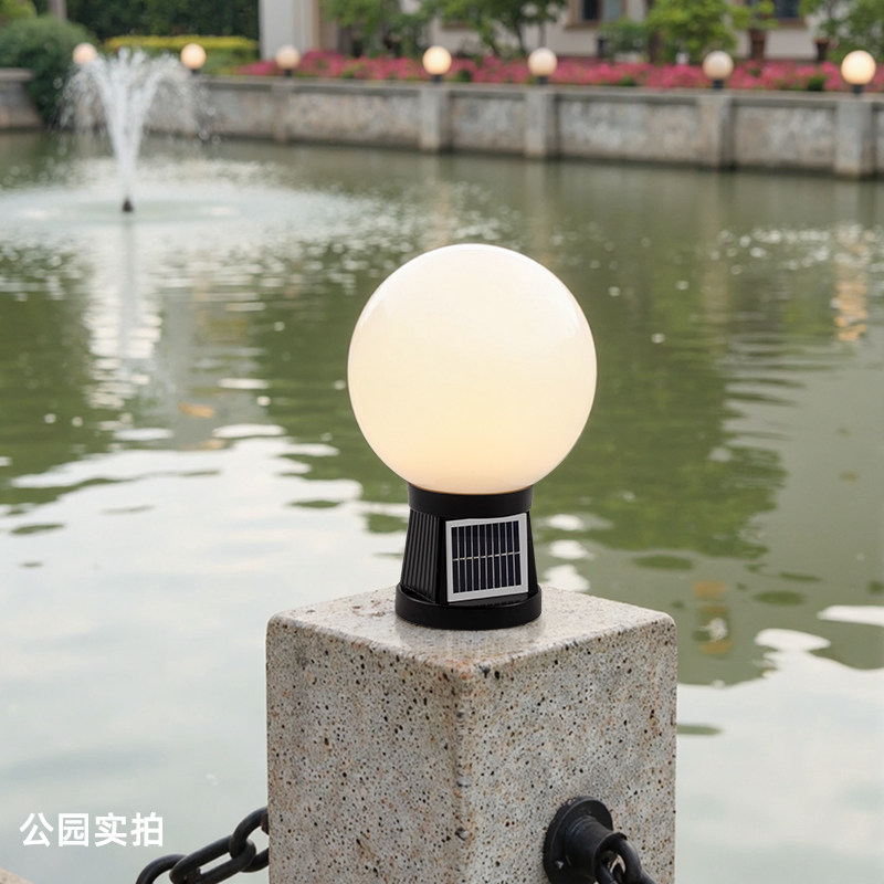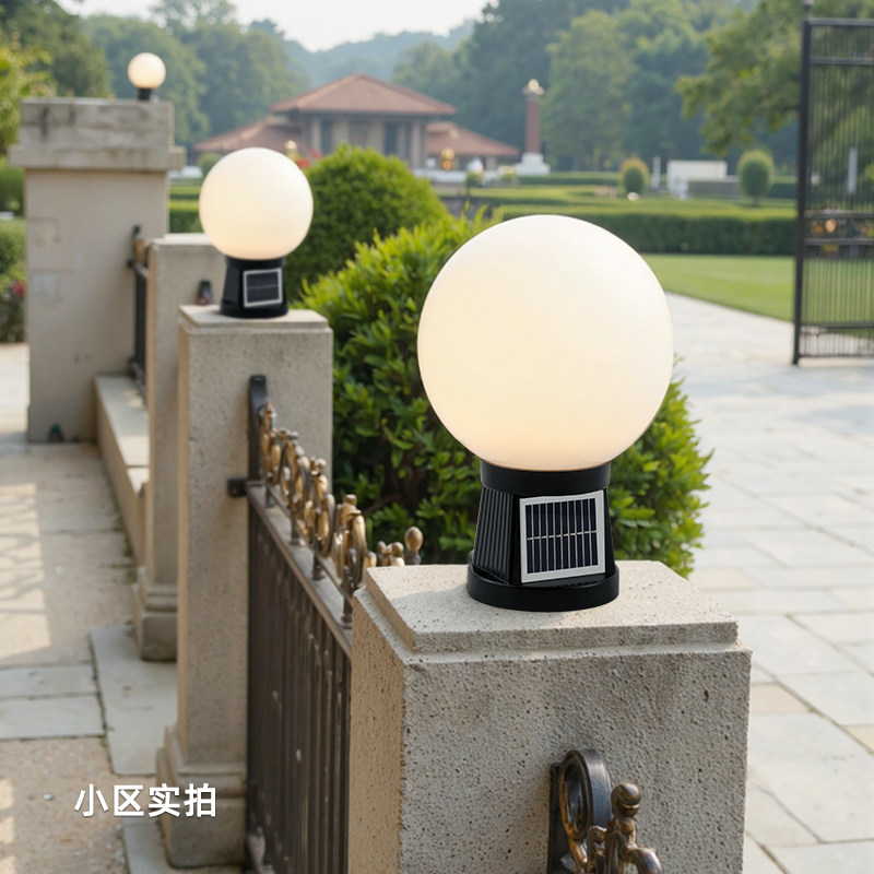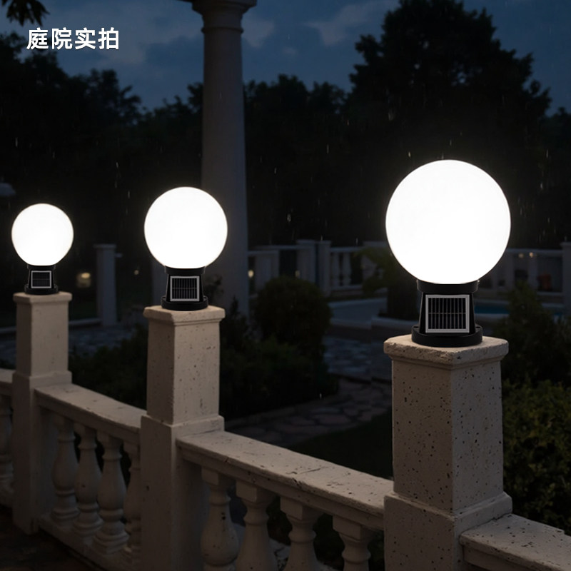 2025年新款太阳能户外柱头灯圆球形别墅大门口围墙照明庭院柱子灯