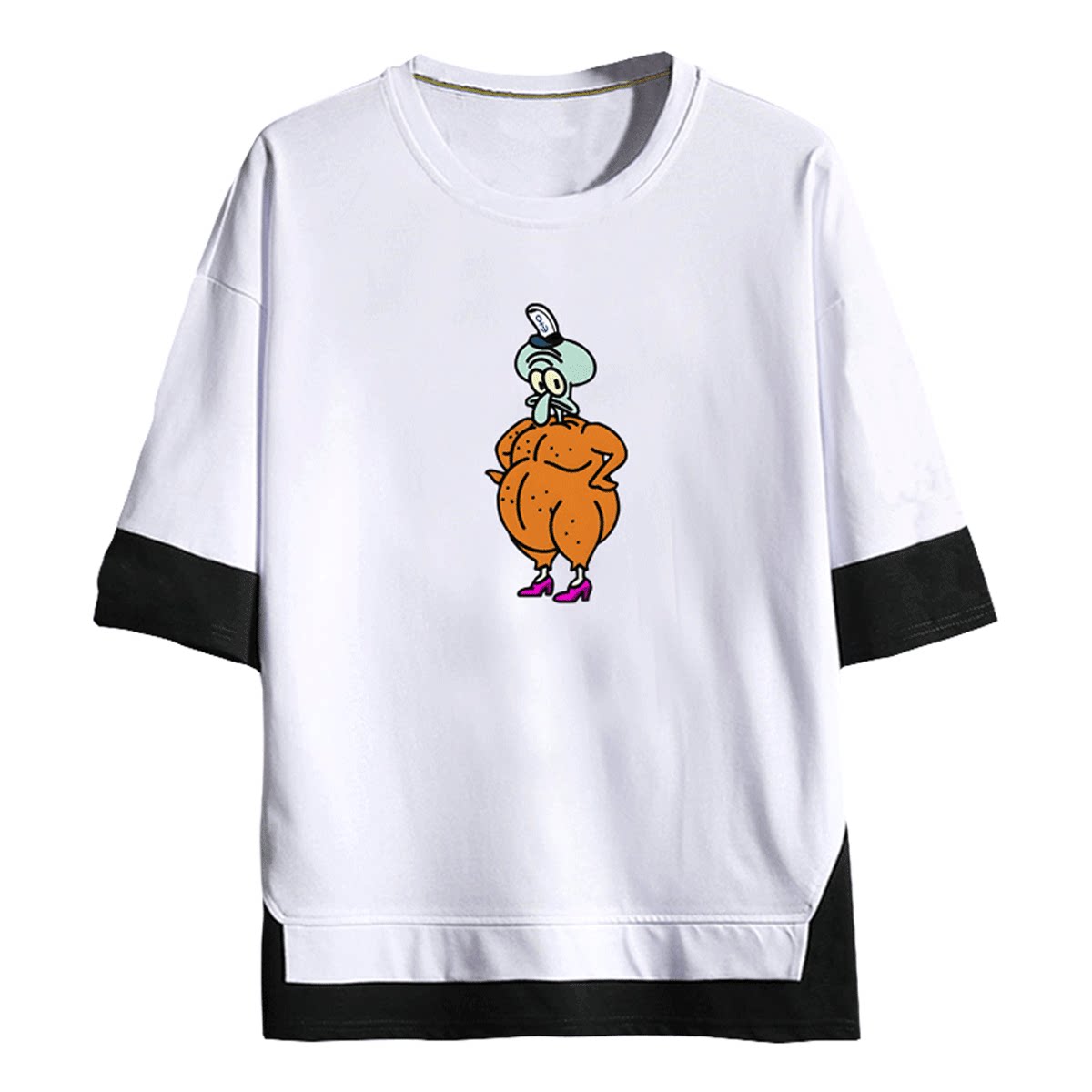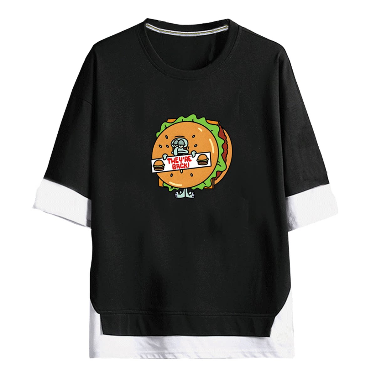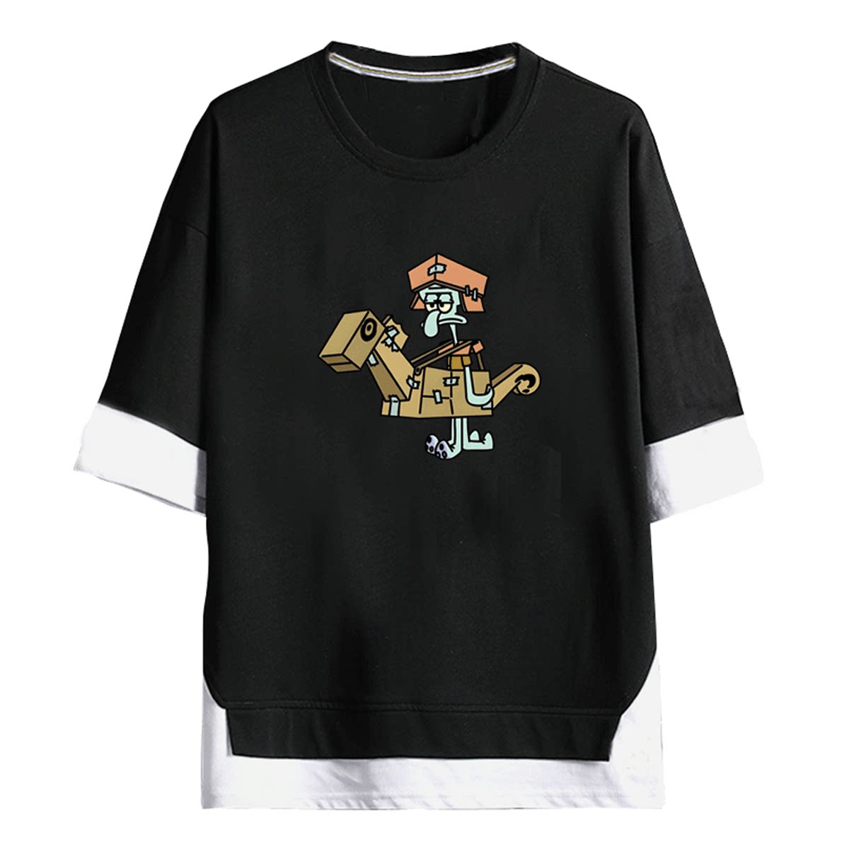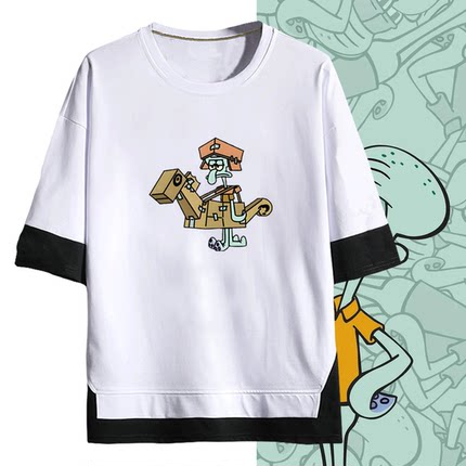 章鱼哥卡通Q版海绵宝宝派大星暖男女情侣可定制夏季短袖T恤假两件
