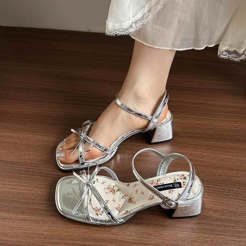 绝美配裙子高跟凉鞋女夏外穿时尚高级感2025新款法式粗跟一字凉拖