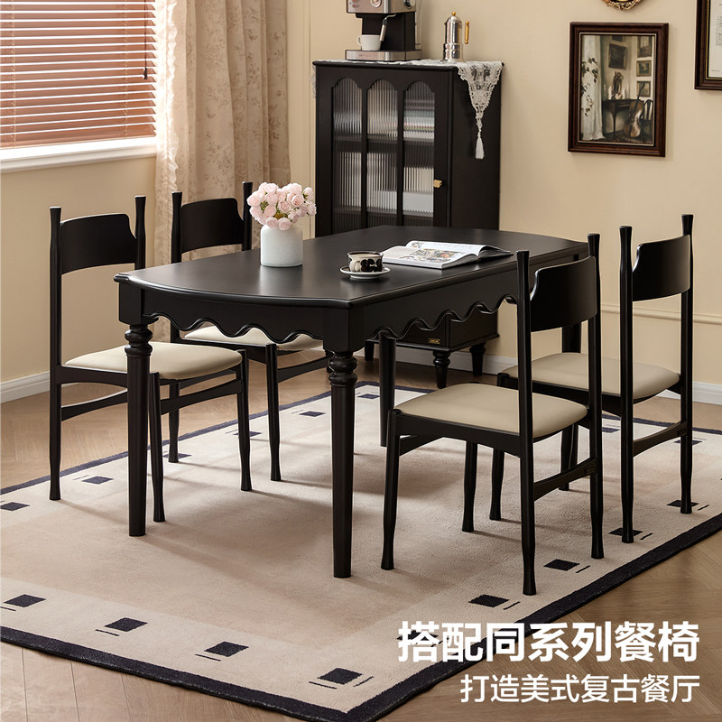 全友家居美式复古风多功能餐桌伸缩可变圆桌客厅家用黑色饭桌椅