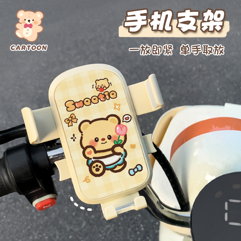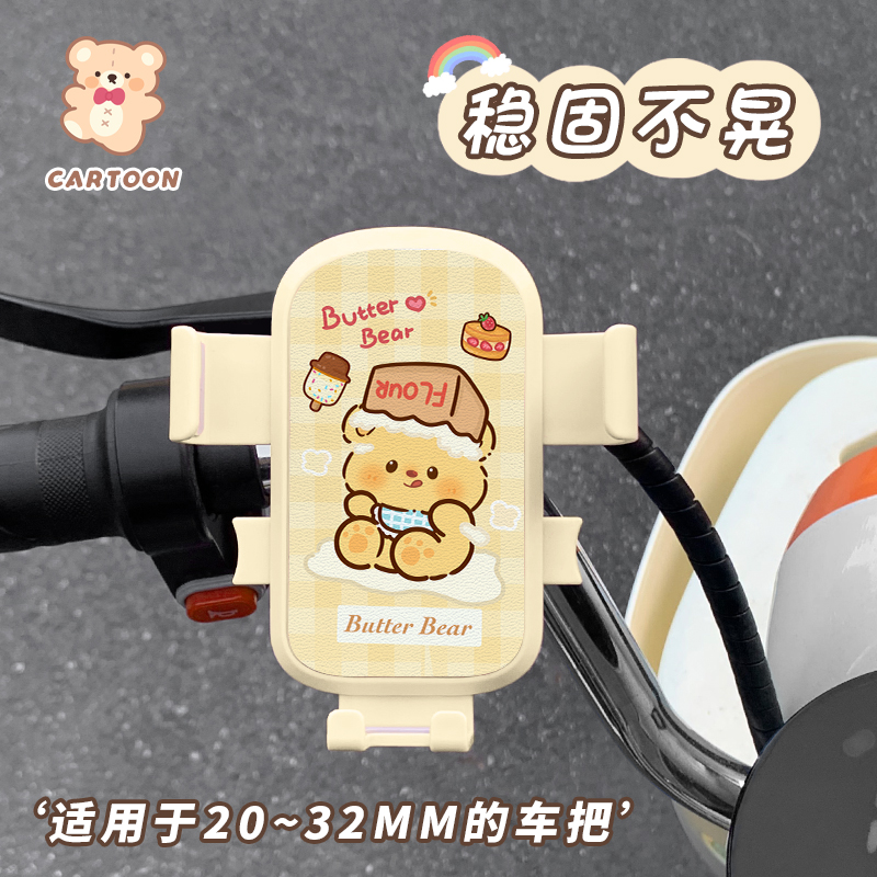 黄油小熊电动车手机支架防摔电瓶车自行车骑行导航支撑架通用女