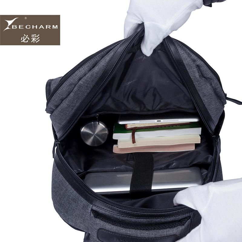 必彩可坐背包双肩包男背包双肩男士旅行包14英寸电脑包商务背包