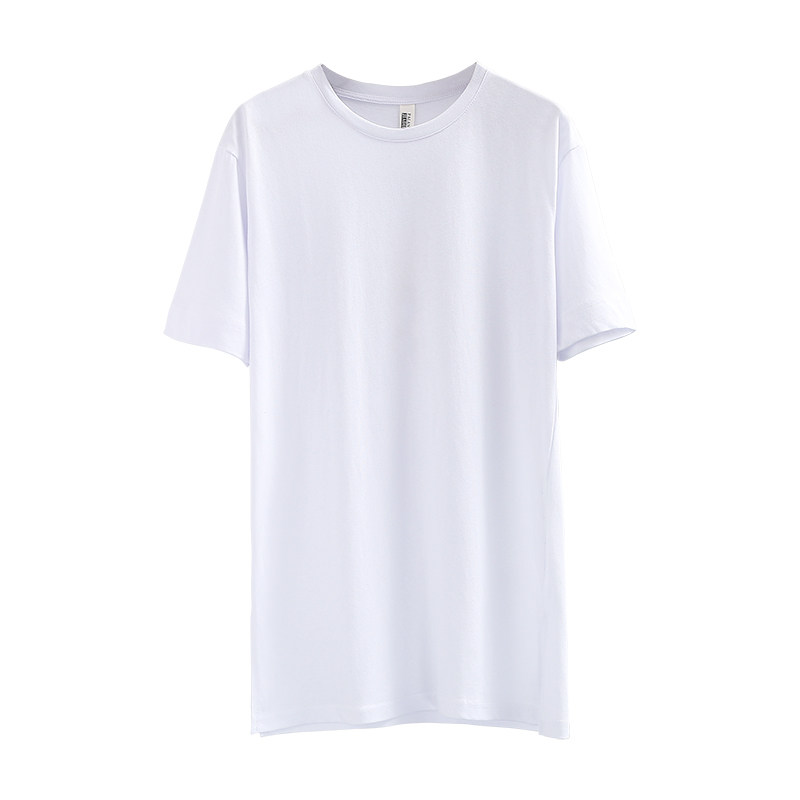 夏季新款韩版宽松圆领中长款开叉短袖纯色纯棉简约T恤打底衫女装