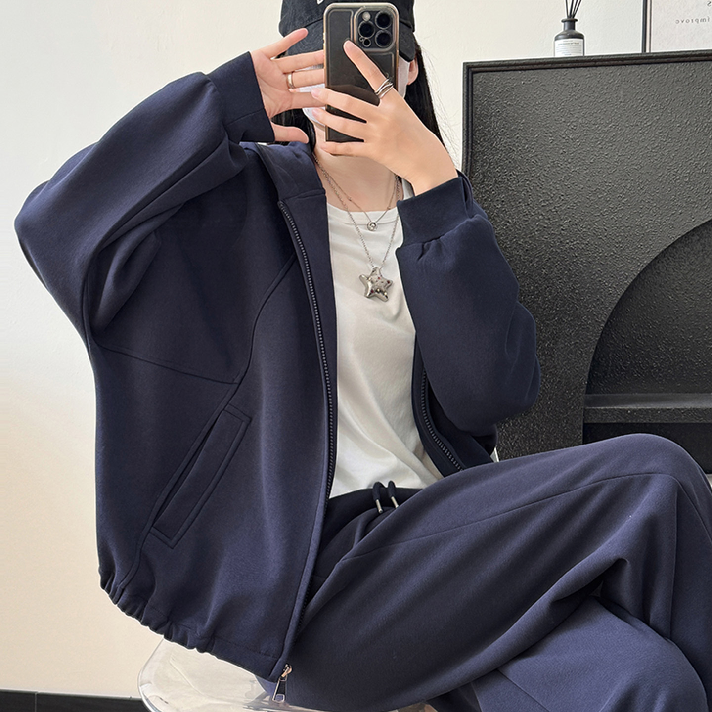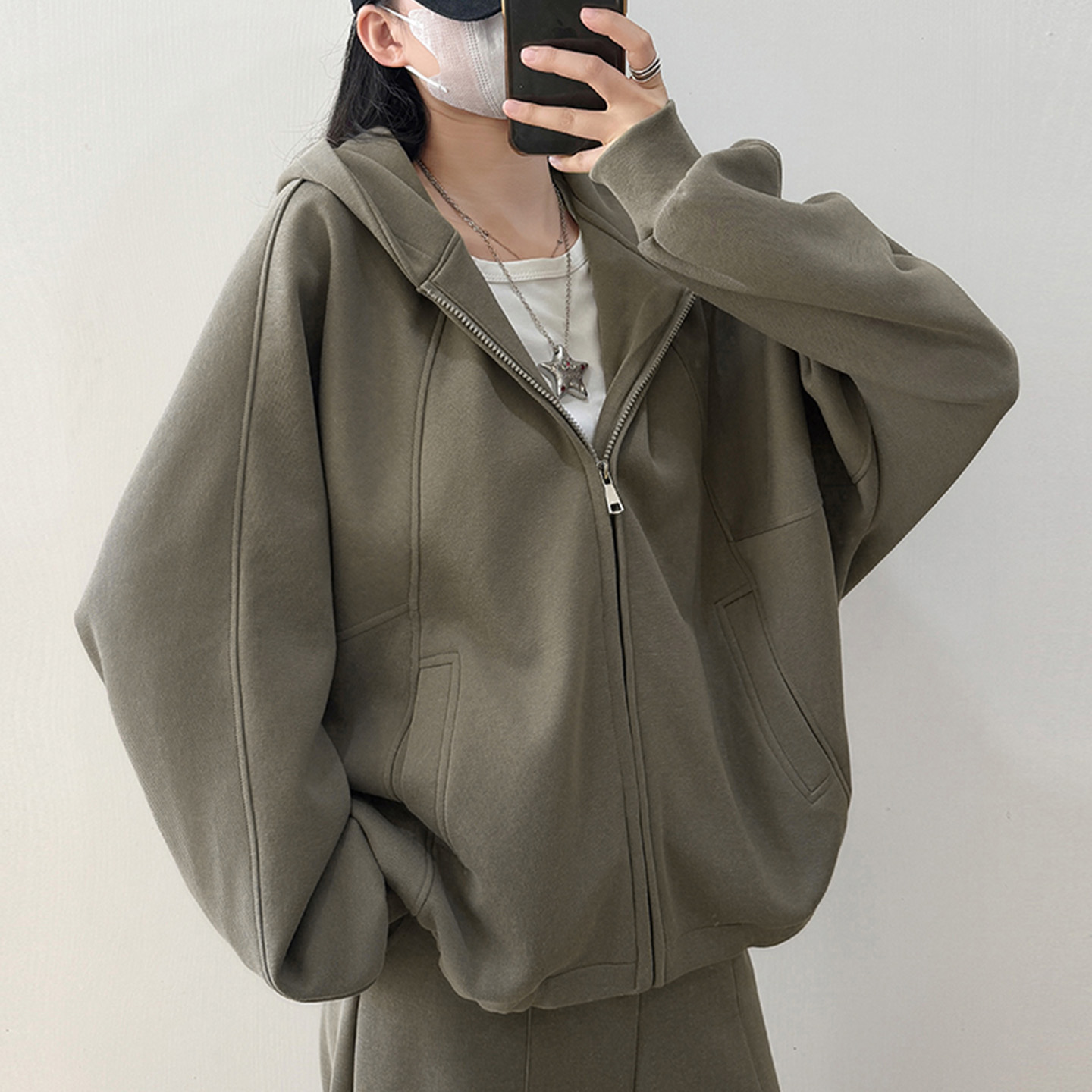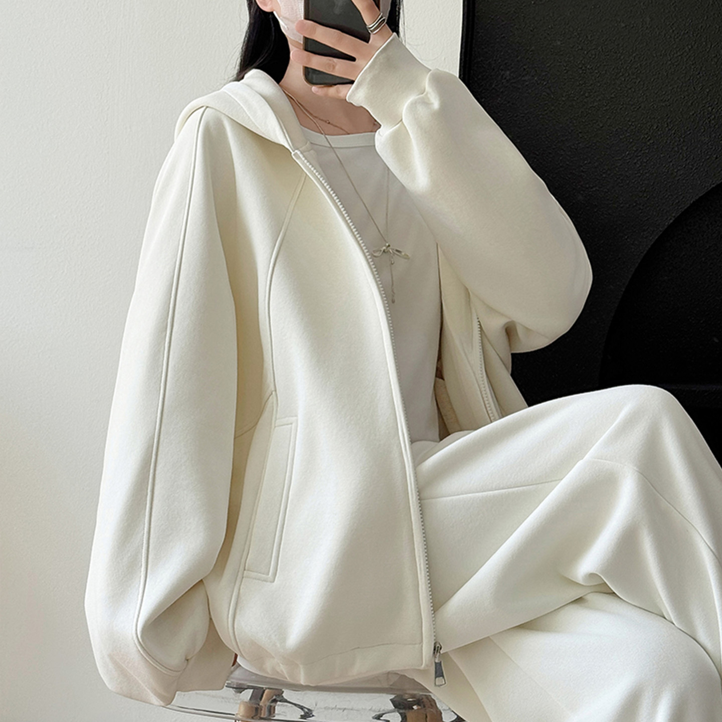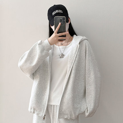 早秋巨好看的2025新款秋季加绒情侣黑色灰色连帽女士卫衣女款外套