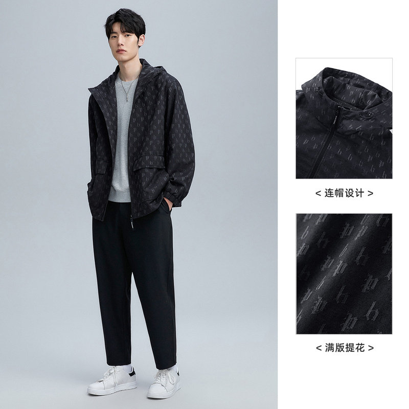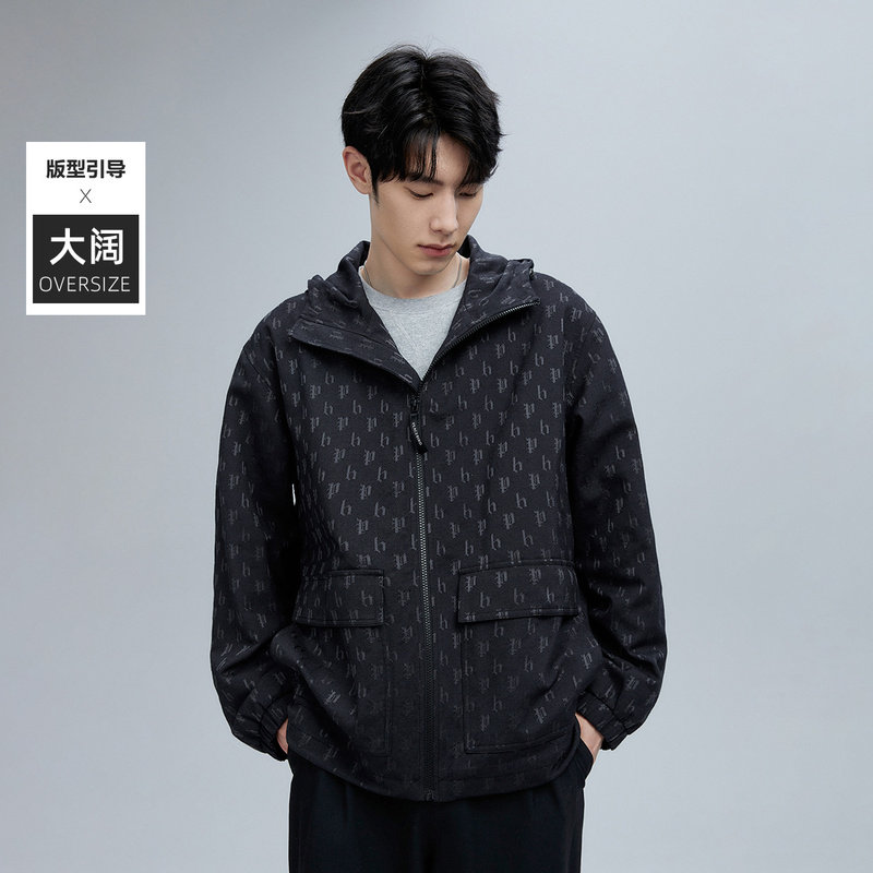 太平鸟男装连帽夹克2025秋季新款潮流痞帅满印宽松休闲茄克外套男