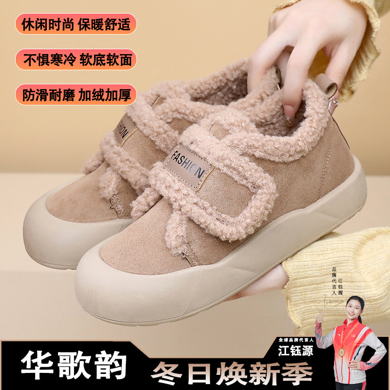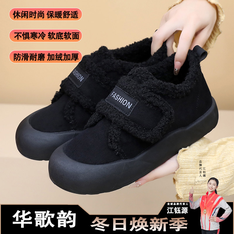 冬季新款加绒加厚雪地靴魔术贴防寒保暖棉鞋厚底防滑耐磨一脚蹬鞋