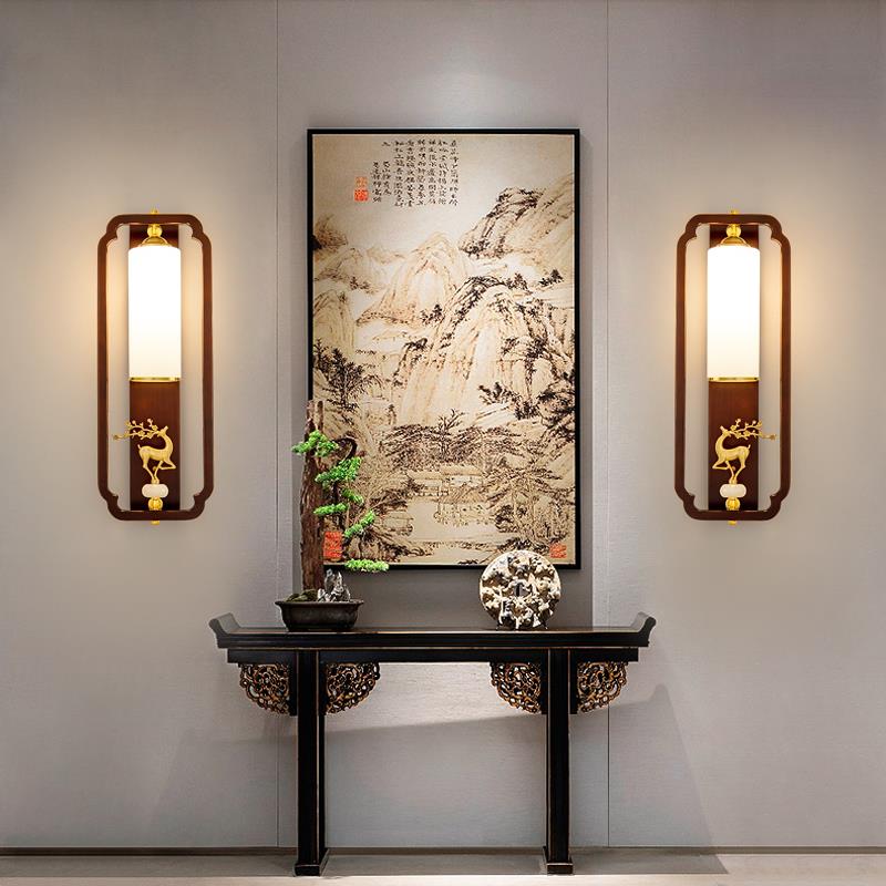 新中式壁灯2025新款免接线 线充电床头卧室客厅实木背景墙过道中