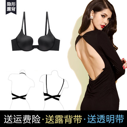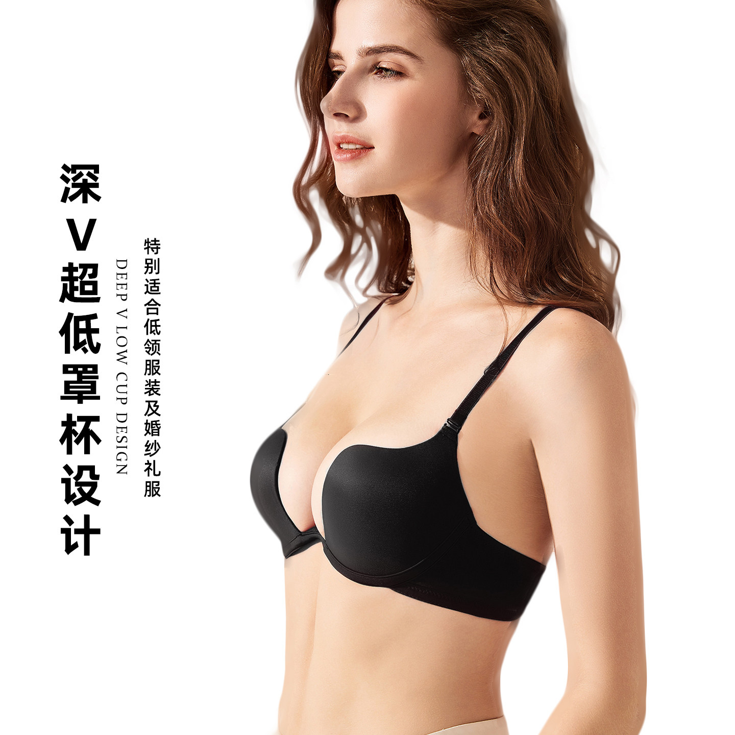 性感U型美背内衣女深V小胸聚拢大露背可外穿隐形挂脖文胸罩大码夏